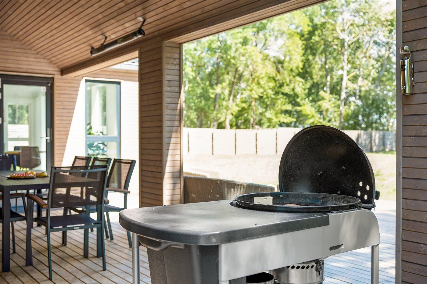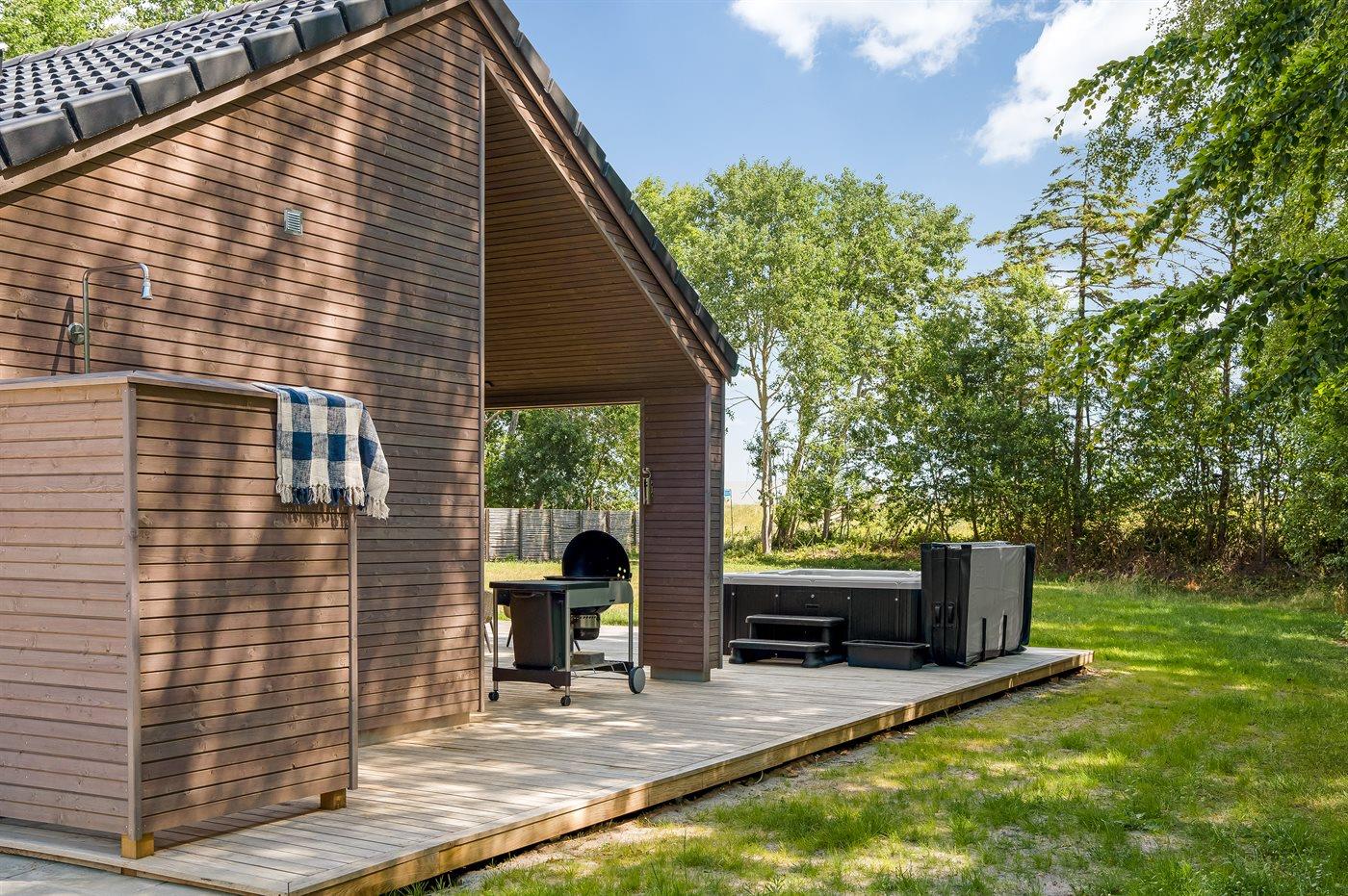Nybygget sommerhus ved Marielyst med spa, sauna og havudsigt, perfekt til en afslappende ferie ved stranden.
