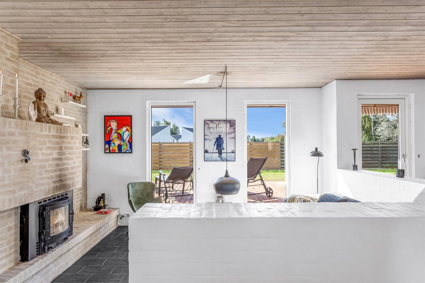 Ferieboligen er beliggende på en 985 m² stor naturgrund. Der er 500 m til havet. Der er en badebro i nærheden. Nærmeste forretning er beliggende i en afstand af 200 m. Der er en golfbane i en afstand af 1500 m. Til ferieboligen hører åbent terrasseareal. Der er redskabsrum. Bålsted. Grill til rådighed. Der er carport til rådighed. Parkering ved ferieboligen.