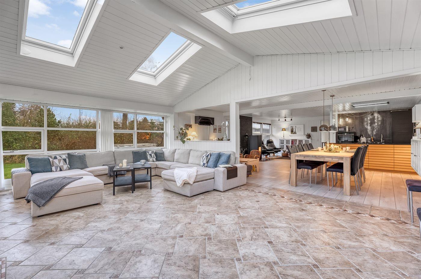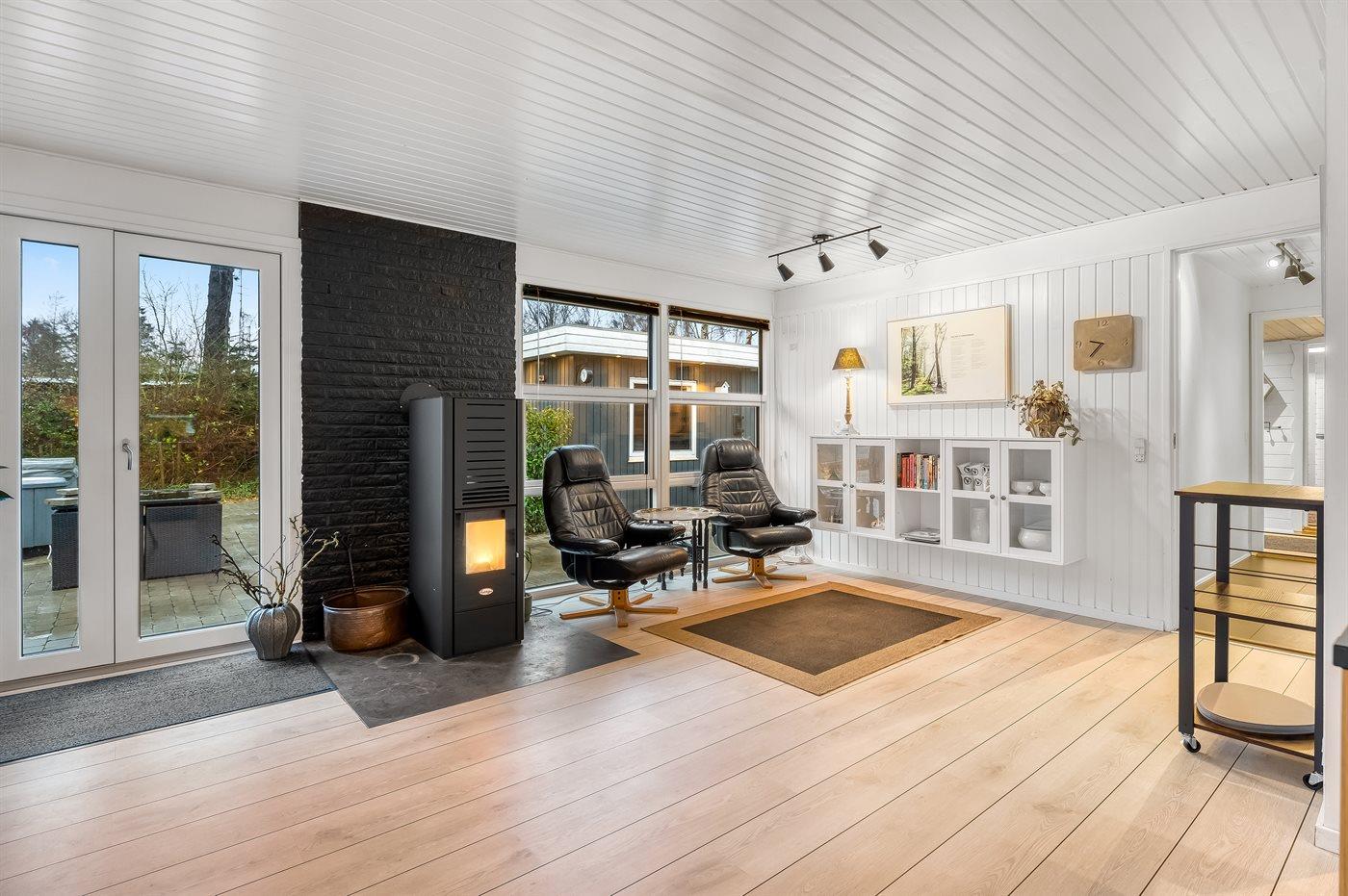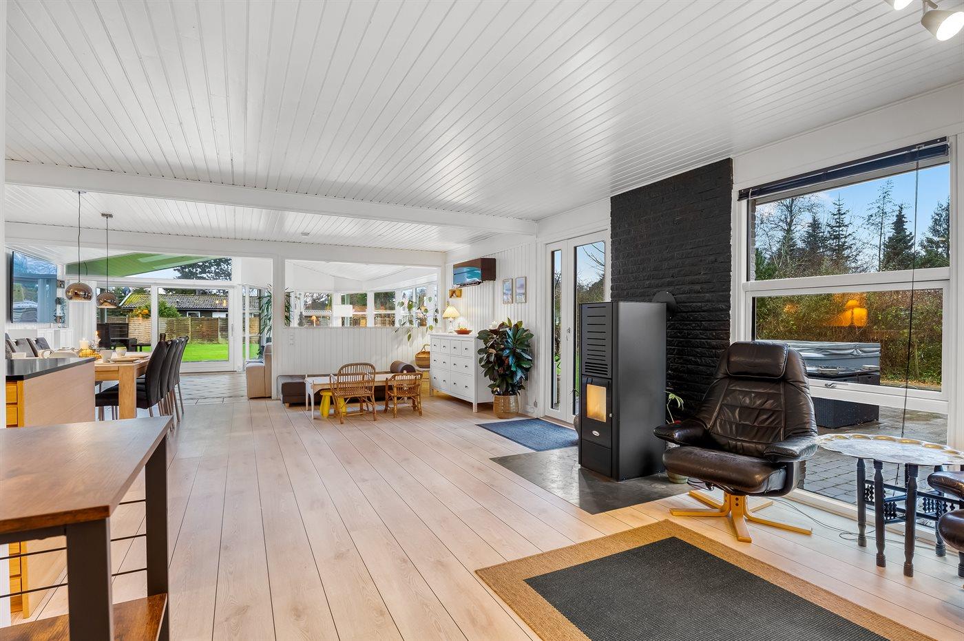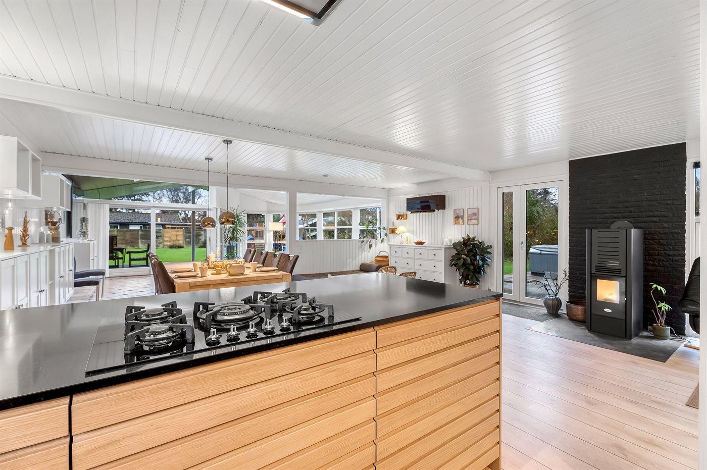 I sommerhuset har man rig mulighed for at tilbringe hyggelige og sjove feriestunder sammen. I køkken-alrummet kan man samles til skønne feriestunder med madlavning, spil og film. Her sørger pille-ovnens knitren for at feriestemningen er helt i top.