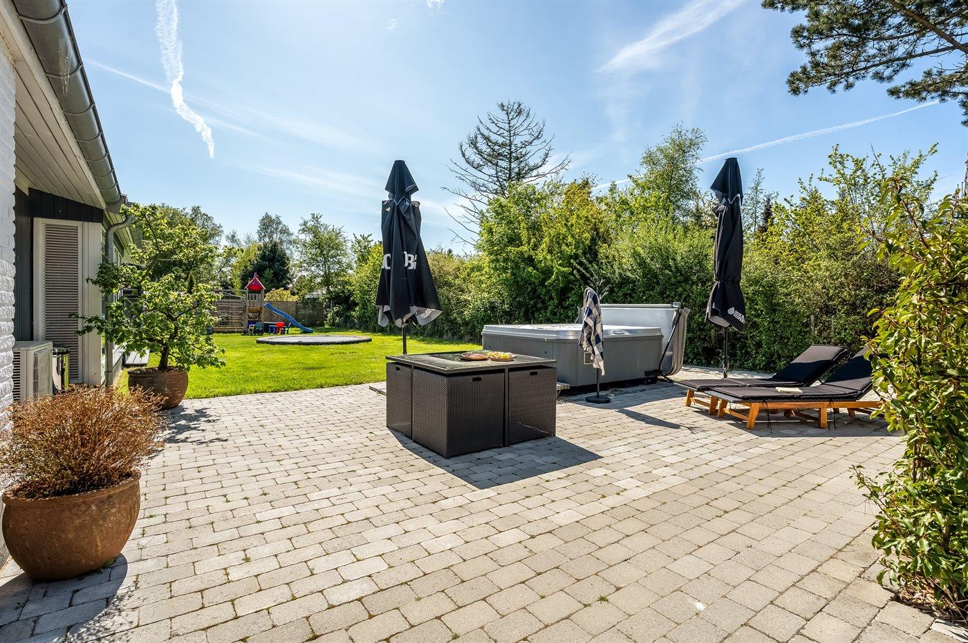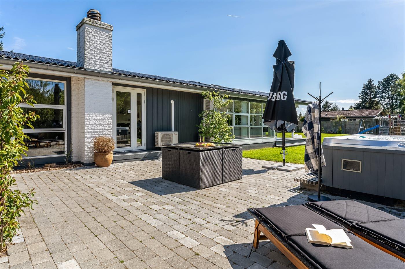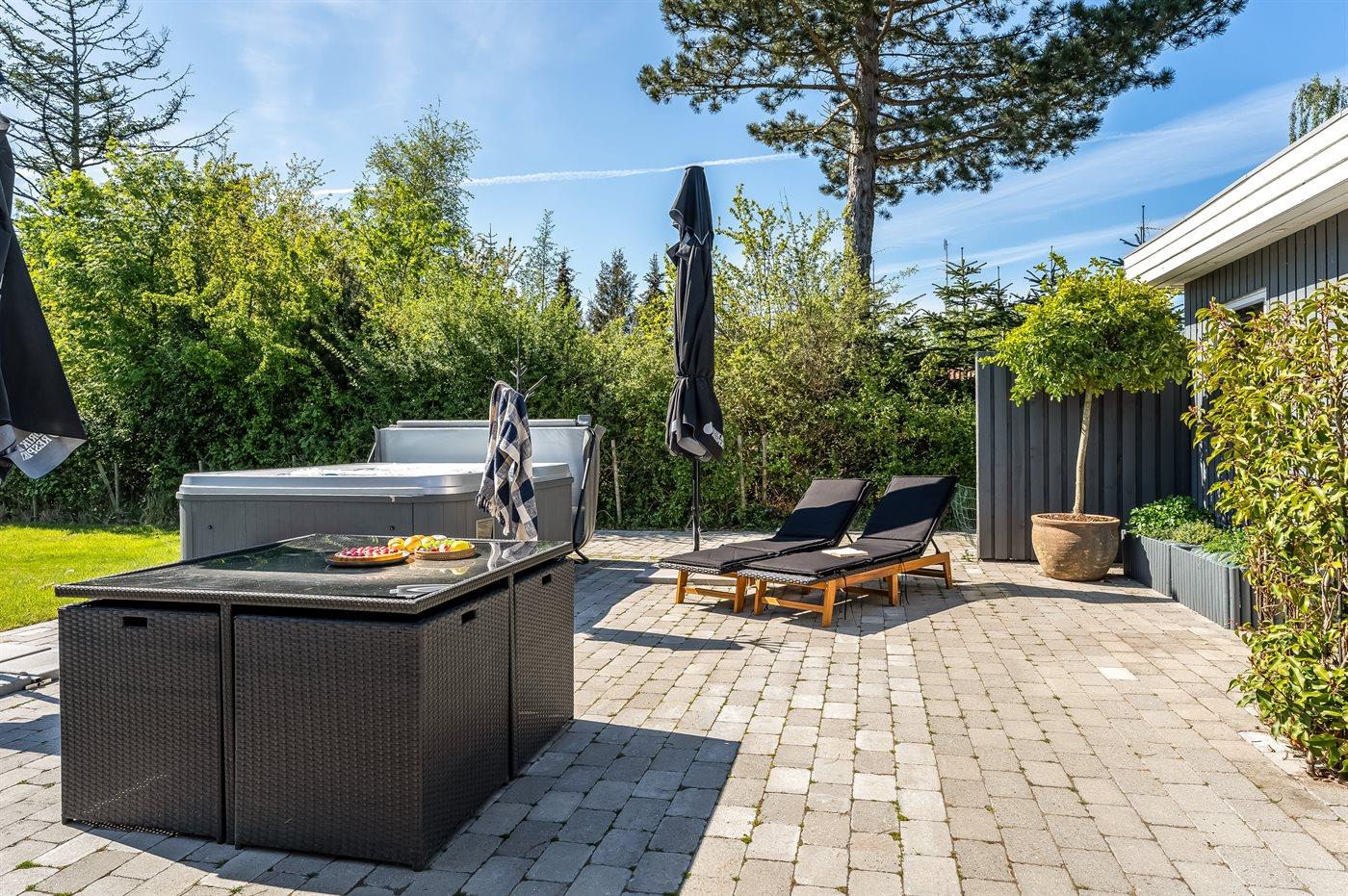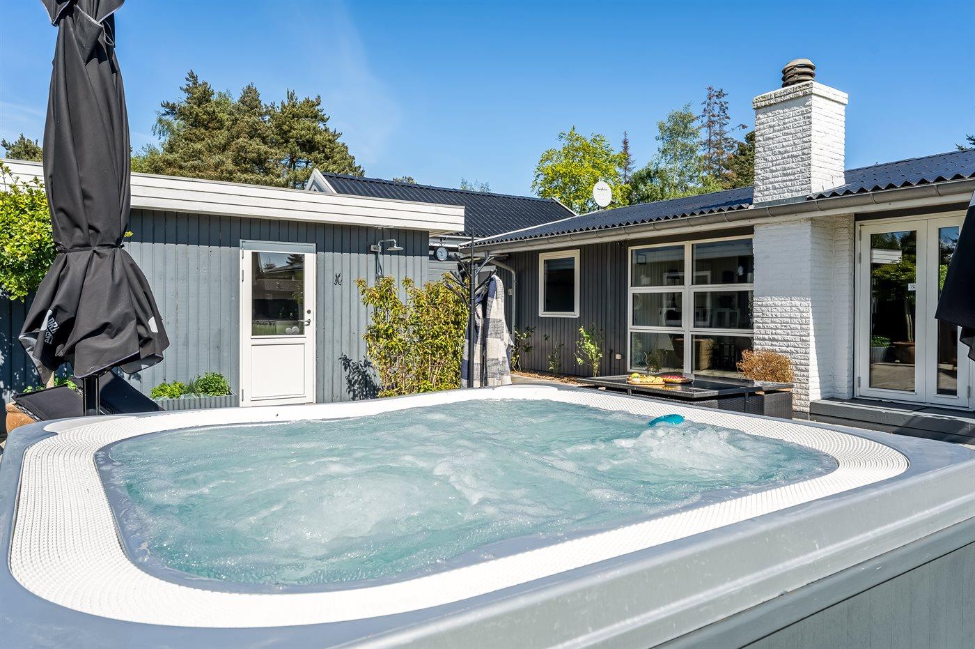 Flere at sommerhusets aktiver finder man udendørs. Her er der bl.a. en udendørs spa, hvor man kan slappe af i det varme, boblende vand under åben himmel – en helt fantastisk oplevelse om aftenen, når man samtidig kan nyde stjernehimlen.