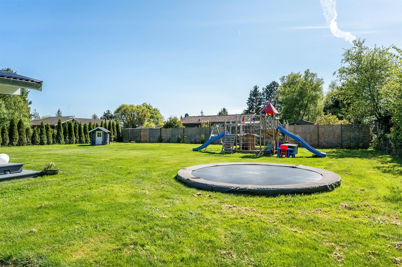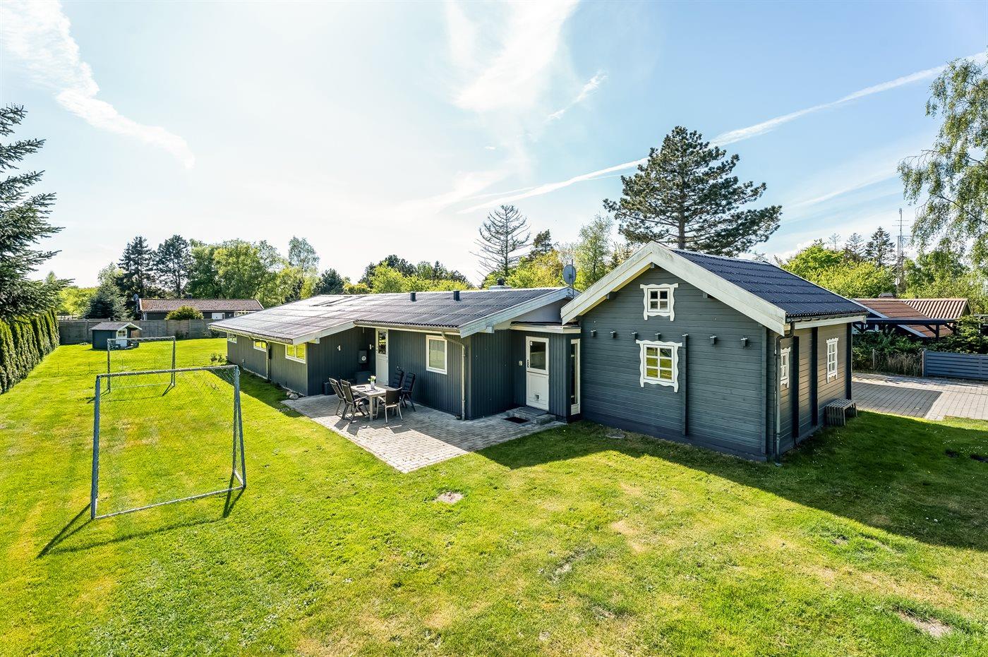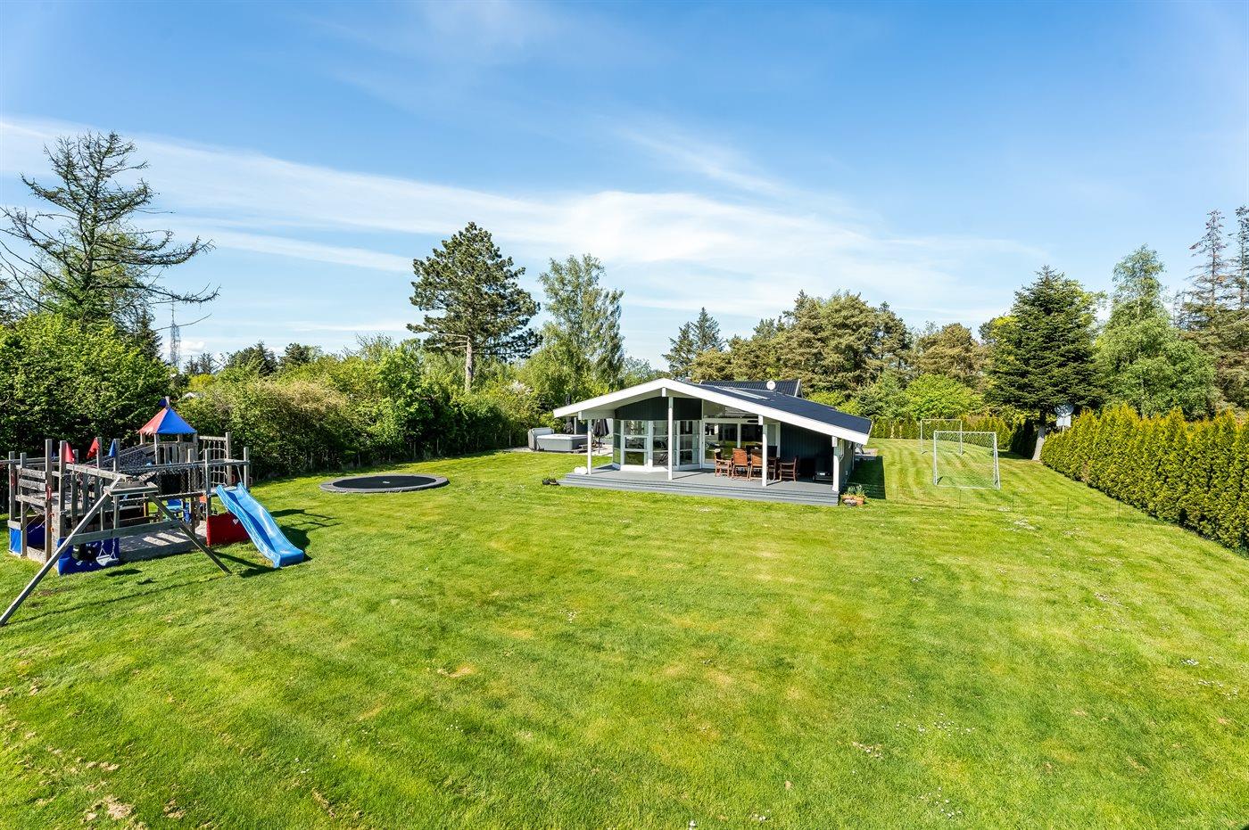 Mens der er afslapning på programmet på terrassen, kan børnene lege i haven, hvor der bl.a. står et legetårn med rutsjebane, sandkasse, fodboldmål og en trampolin til rådighed. Om aftenen kan hele flokken samles på terrassen til en lækker middag, som kan tilberedes på sommerhusets grill.