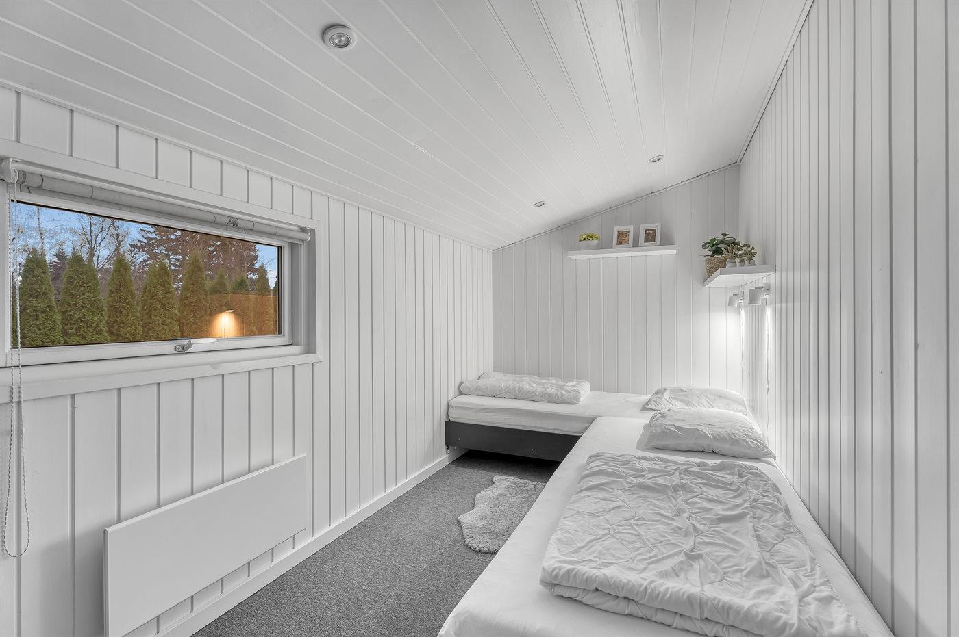 Det 179 kvadratmeter store sommerhus er indrettet med 3 gode soveværelser, hvor man kan få sin skønhedssøvn på ferien. Alle værelser er indrettet med gode enkeltsenge, som kan skubbes sammen til dobbeltsenge. Desuden findes der en dobbeltsovesofa i forbindelse med aktivitetsrummet. Der er to badeværelser.