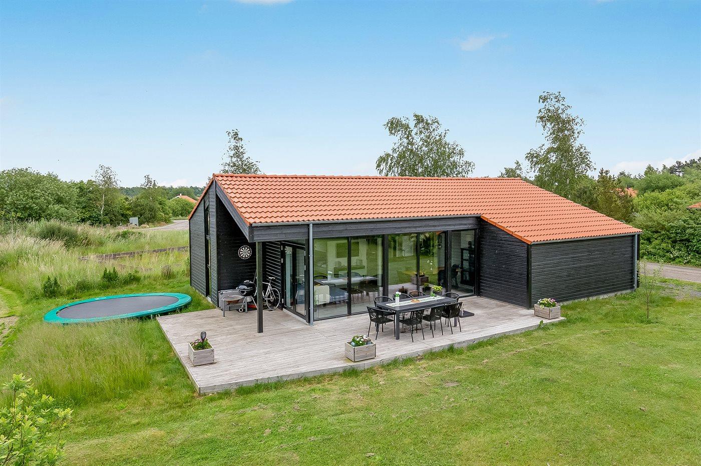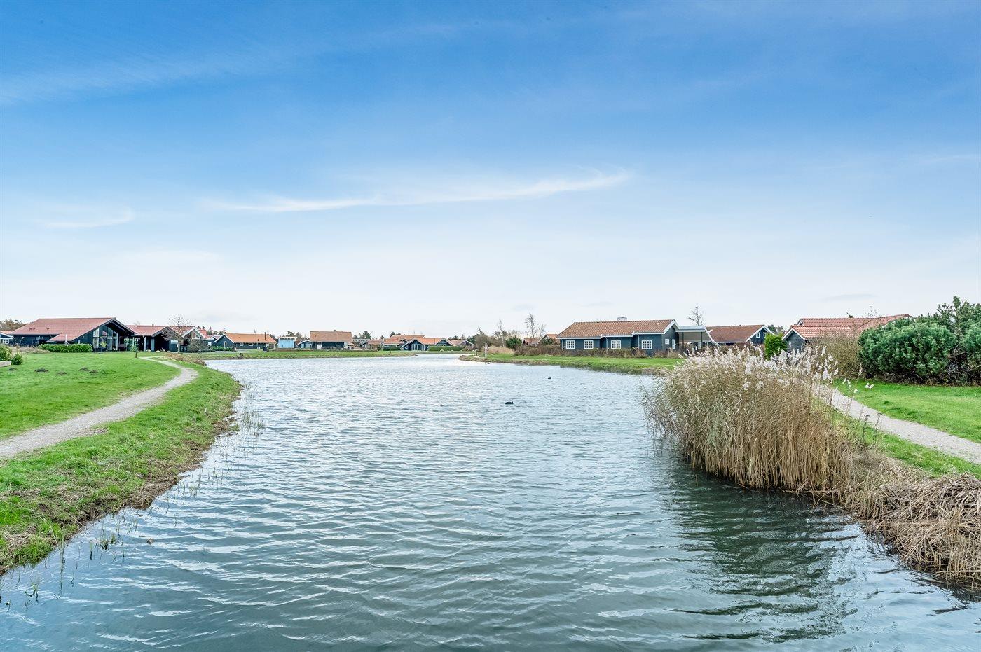 Ferieboligen er beliggende på en 370 m² stor naturgrund. Der er 1500 m til havet. Der er en sø i en afstand af 50 m. Nærmeste forretning er beliggende i en afstand af 800 m. Der er en golfbane i en afstand af 1500 m. Til ferieboligen hører 30 m² terrasseareal. Desuden er der 12 m² overdækket terrasse. Trampolin. Der ligger en legeplads i en afstand af 50 m. Grill til rådighed. Parkering ved ferieboligen.