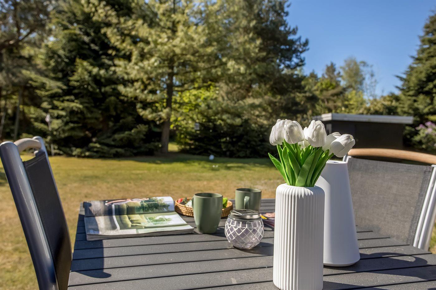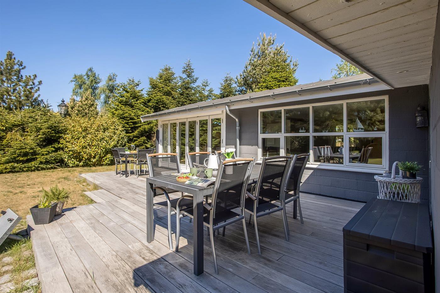 Til huset hører en dejlig lys og meget hyggelig udestue, hvor du kan nyde mange afslappende timer. Desuden findes der en skøn terrasse med god plads til hygge på de dejlige aftener i Marielyst – tænd grillen og tilbered et lækkert måltid, som kan nydes i det fri.