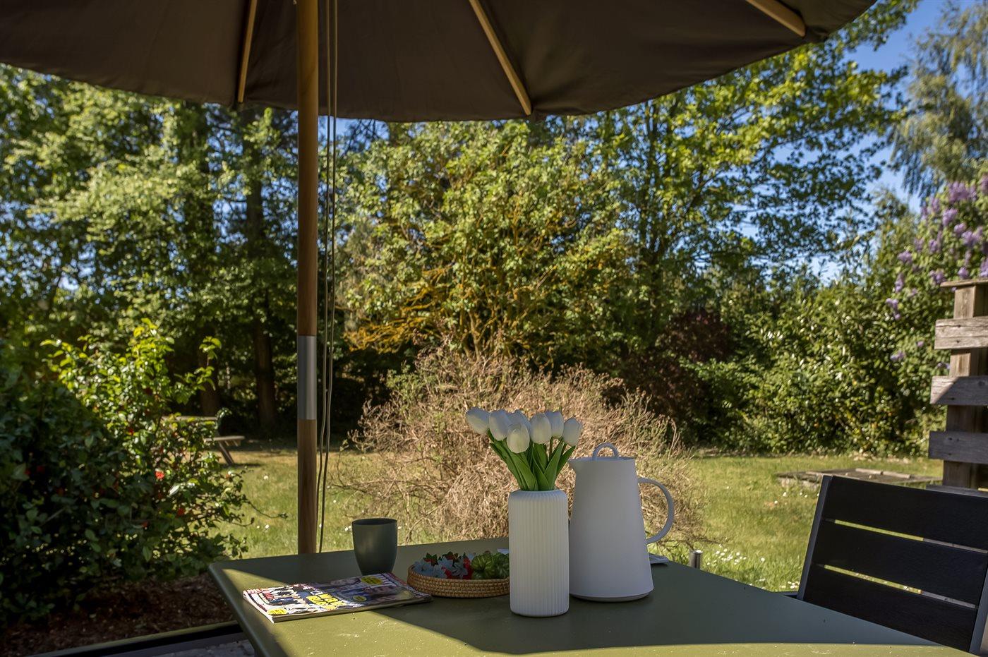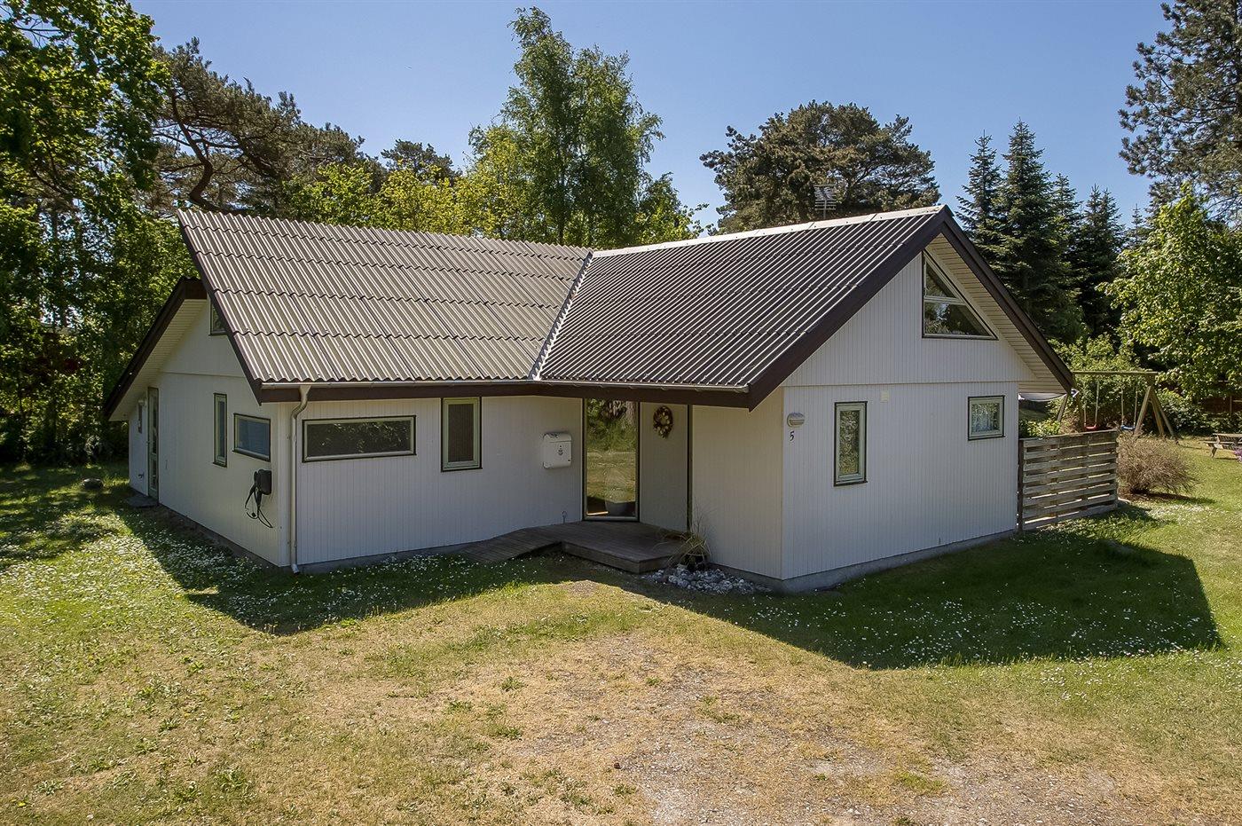 Til huset hører såvel åben som overdækket terrasse, hvor du kan tilbringe dejlige timer i det fri samt en udestue med store glaspartier og udsigt til den skønne have. I haven er der rig mulighed for solbadning, og der er også tænkt på de små feriegæster, da der findes både gynge og sandkasse.