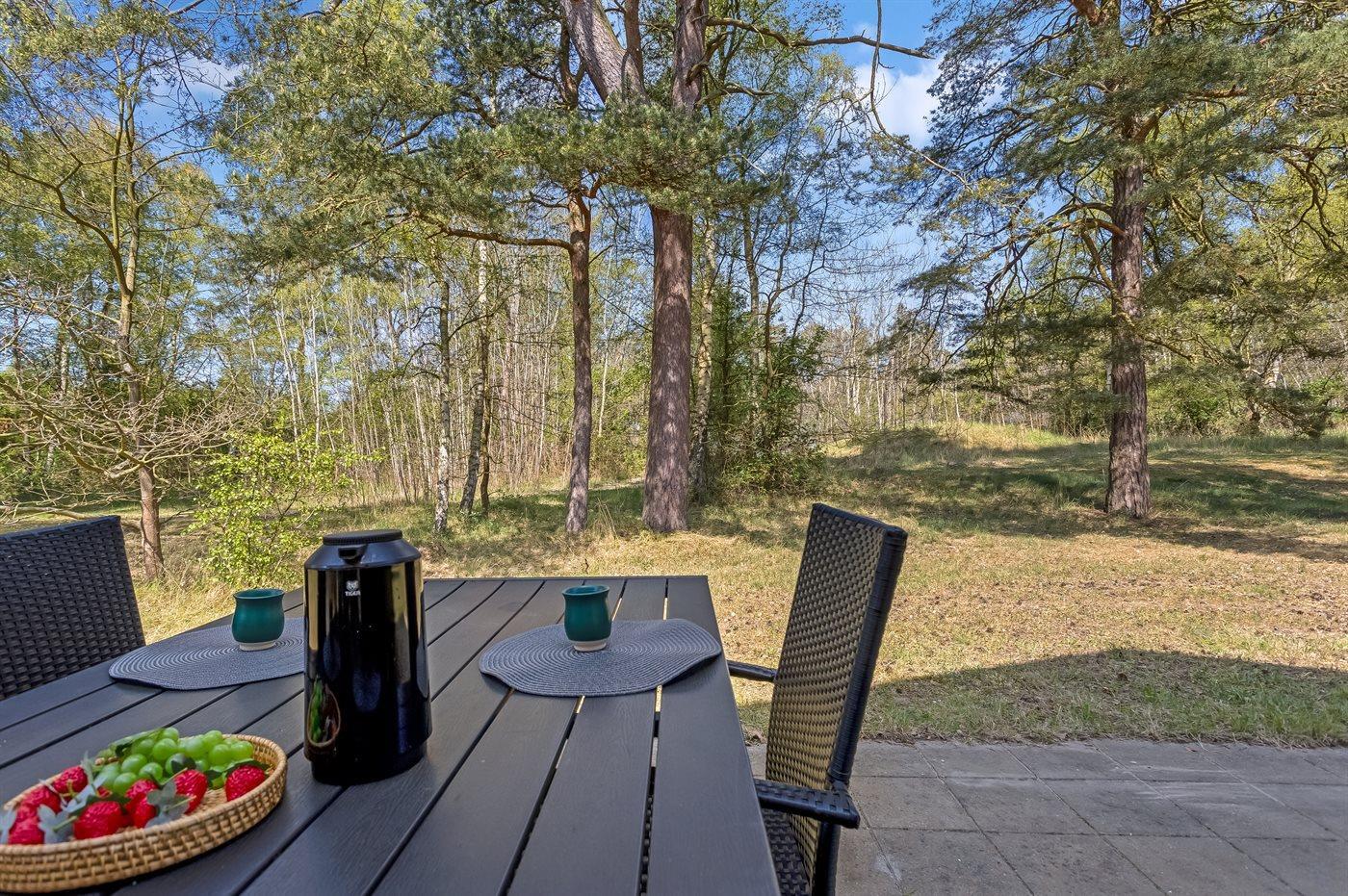 Ferieboligen er beliggende på en 250 m² stor naturgrund. Der er 200 m til havet. Nærmeste forretning er beliggende i en afstand af 100 m. Til ferieboligen hører åbent terrasseareal. Desuden er der overdækket terrasse. Der er redskabsrum. Der ligger en legeplads i en afstand af 200 m. Grill til rådighed.