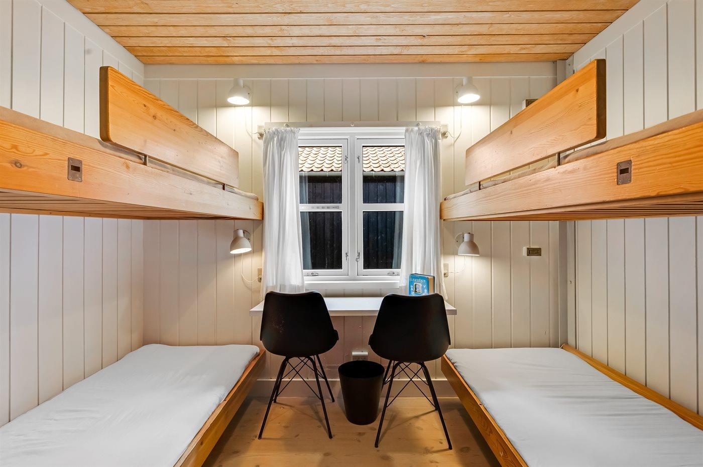 Der er i alt 2 soveværelser. Sovepladserne fordeler sig på: 2 sovepladser i dobbeltseng. 4 sovepladser i køjesenge. Derudover er der 1 stk. barneseng.