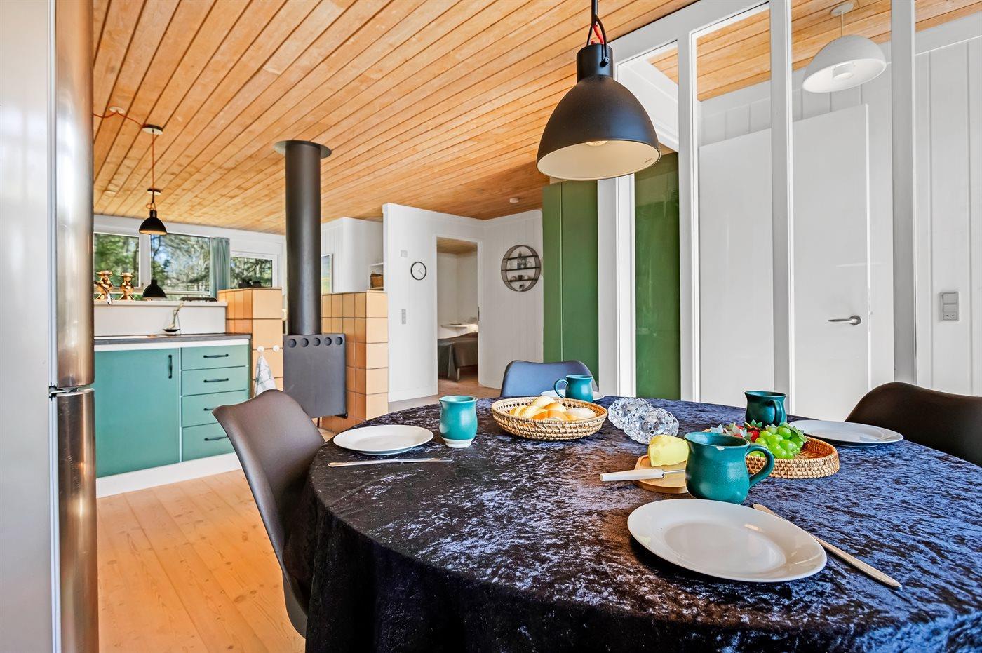 Køkkenet er udstyret med 1 køleskab. Der er 4 keramiske kogeplader, varmluftovn samt opvaskemaskine.