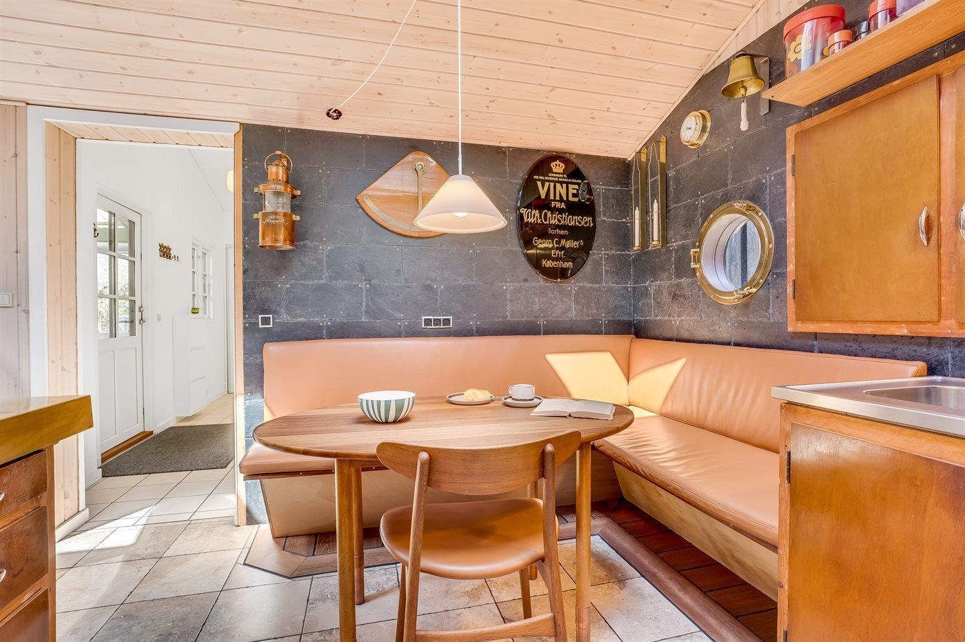 Ferieboligen er beliggende på en 800 m² stor naturgrund. Der er 550 m til havet. Nærmeste forretning er beliggende i en afstand af 250 m. Til ferieboligen hører åbent terrasseareal. Desuden er der overdækket terrasse. På lune aftener sørger en udendørs pejs for hyggelig stemning. Grill til rådighed. Parkering ved ferieboligen.