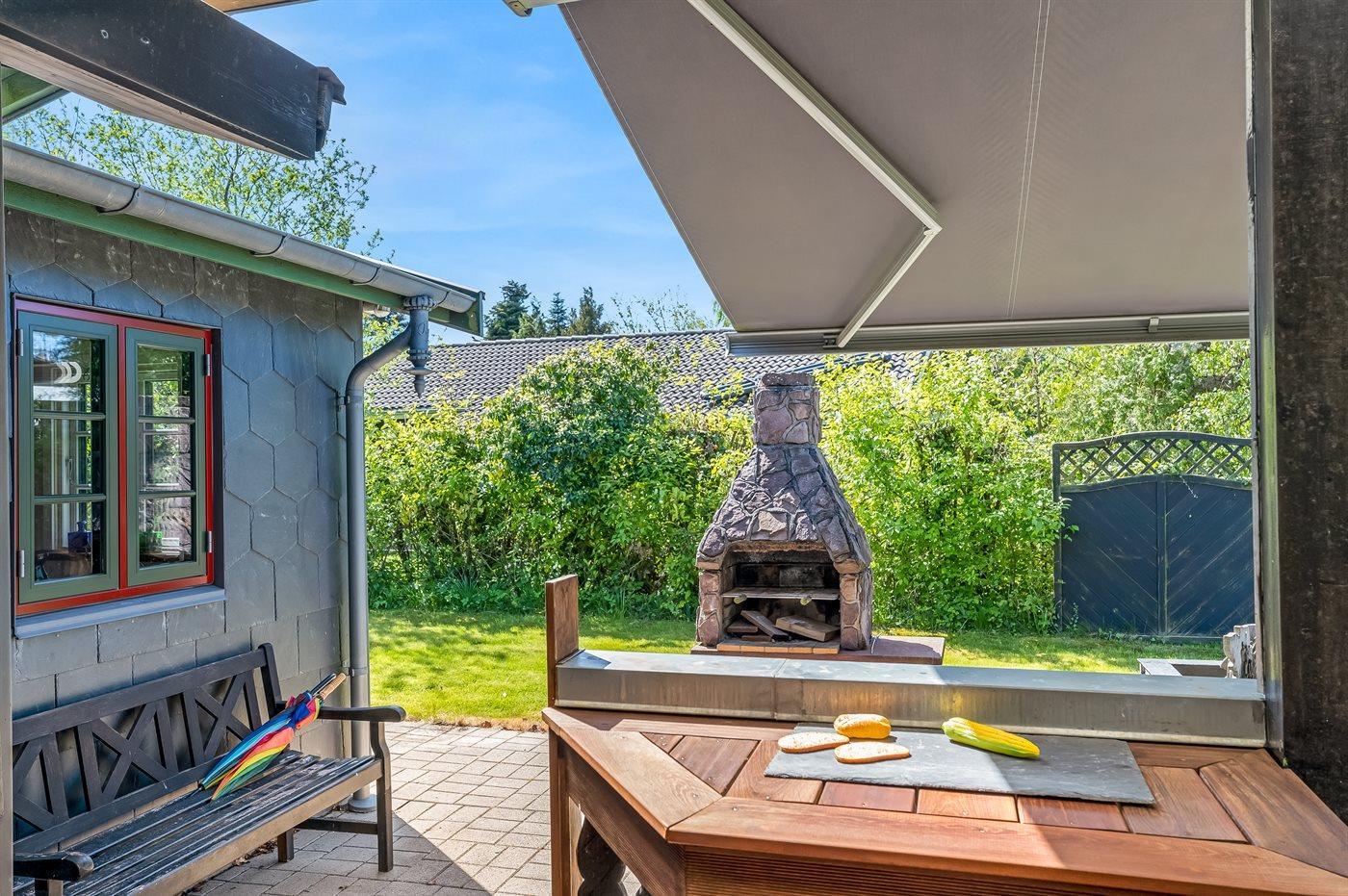 Der er 2 skønne terrasser uden for med både morgenterrasse og eftermiddagsterrasse med mulighed for sol og skygge. En del af terrasserne er overdækket, og der er ydermere en markise, som man kan sidde inde under i dejlige, lune sommeraftener. En kulgril er til rådighed, og der ydermere en udendørs pejs.