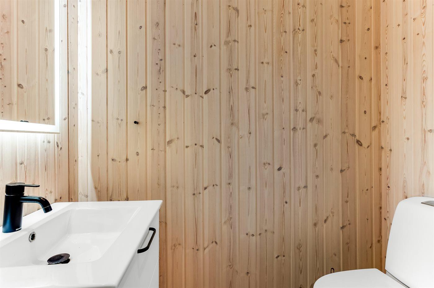 Der er 3 badeværelser med bruseniche og 4 toiletter, heraf 1 gæstetoilet. Der er gulvvarme på 3 badeværelser. Der er gulvvarme på gæstetoilettet. I saunaen er der mulighed for afslapning.