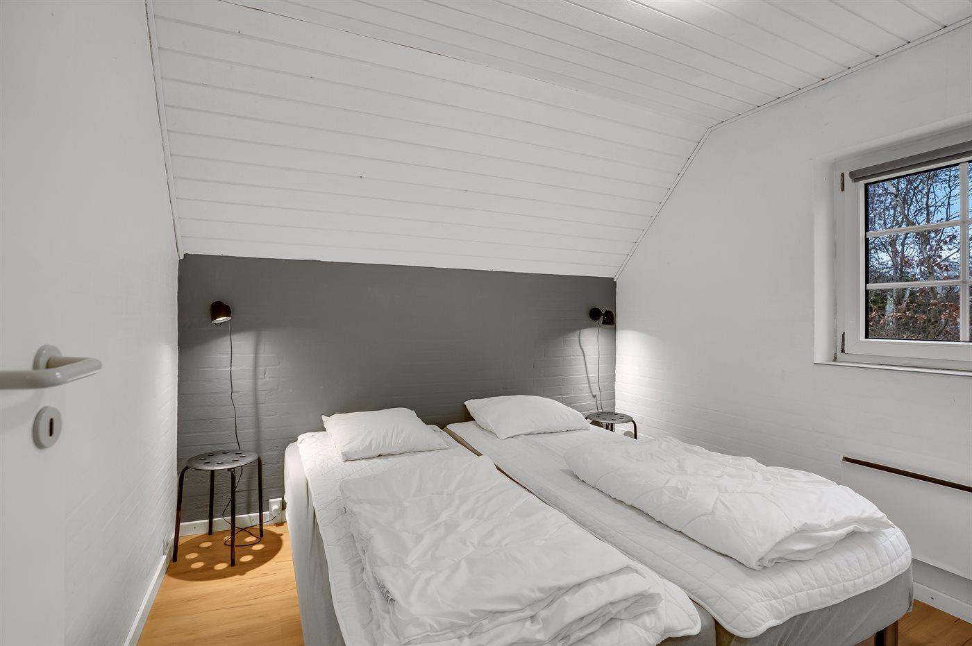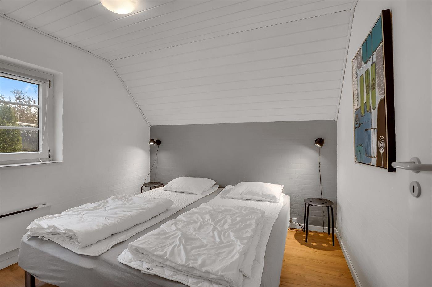 Der er i alt 6 soveværelser. Sovepladserne fordeler sig på: 8 sovepladser i dobbeltsenge. 4 sovepladser i enkeltsenge.