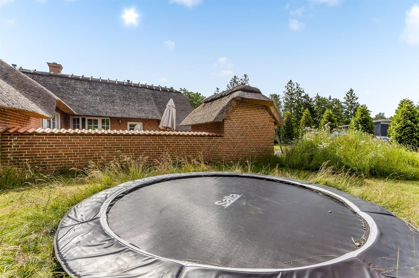 Dette dejlige sommerhus med bl.a. swimmingpool og spa er beliggende på en stor grund, omgivet af træer.