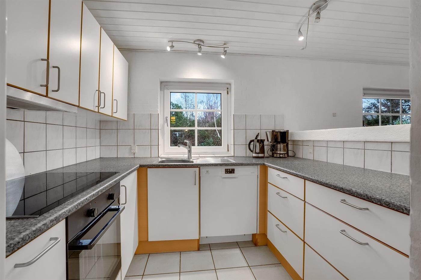 Køkkenet er udstyret med 1 køleskab. Der er 4 keramiske kogeplader, varmluftovn, mikrobølgeovn samt opvaskemaskine.