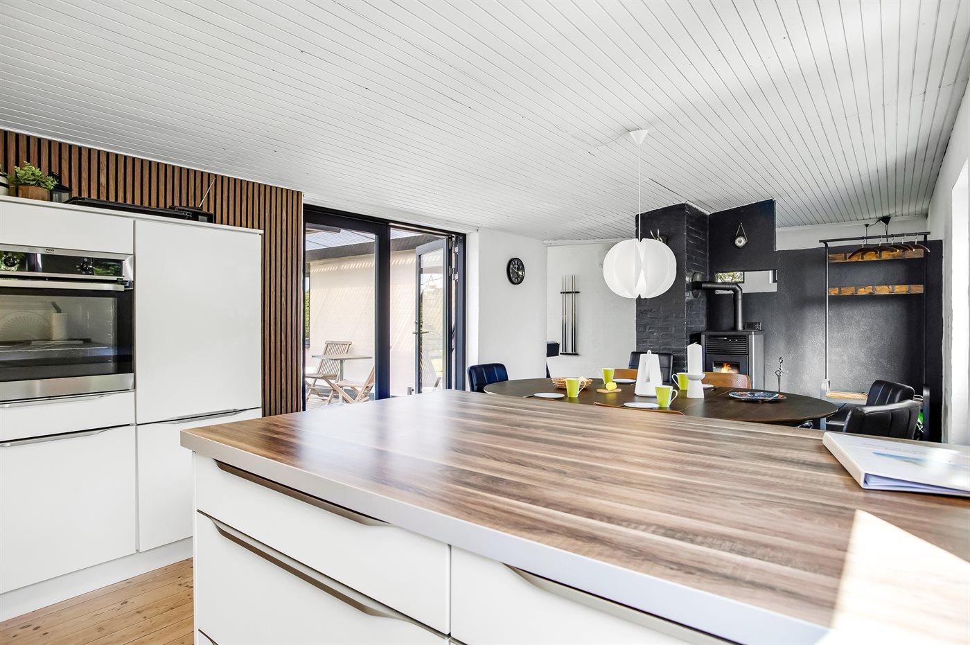 Køkkenet er udstyret med 1 køleskab. Der er 4 induktionskogeplader, varmluftovn samt opvaskemaskine.