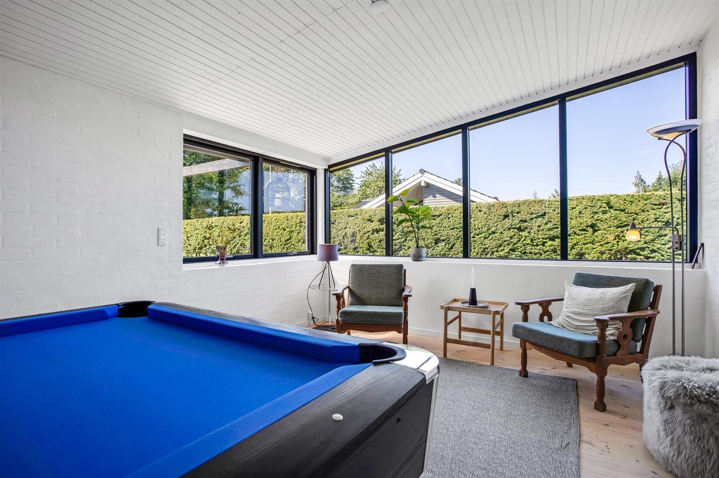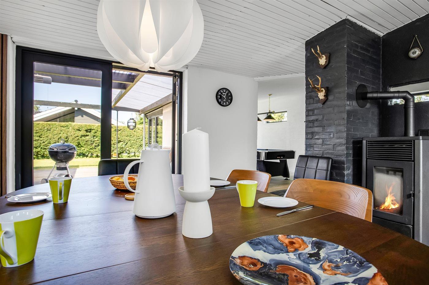 Huset råder bl.a. over luft til luft varmepumpe, træpilleovn, gratis Wi-Fi og poolbord.