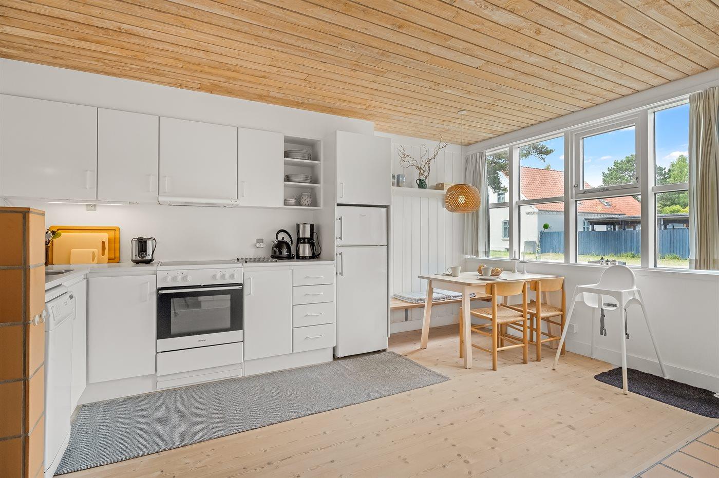 Køkkenet er udstyret med 1 køleskab. Der er 4 keramiske kogeplader, varmluftovn, mikrobølgeovn samt opvaskemaskine.