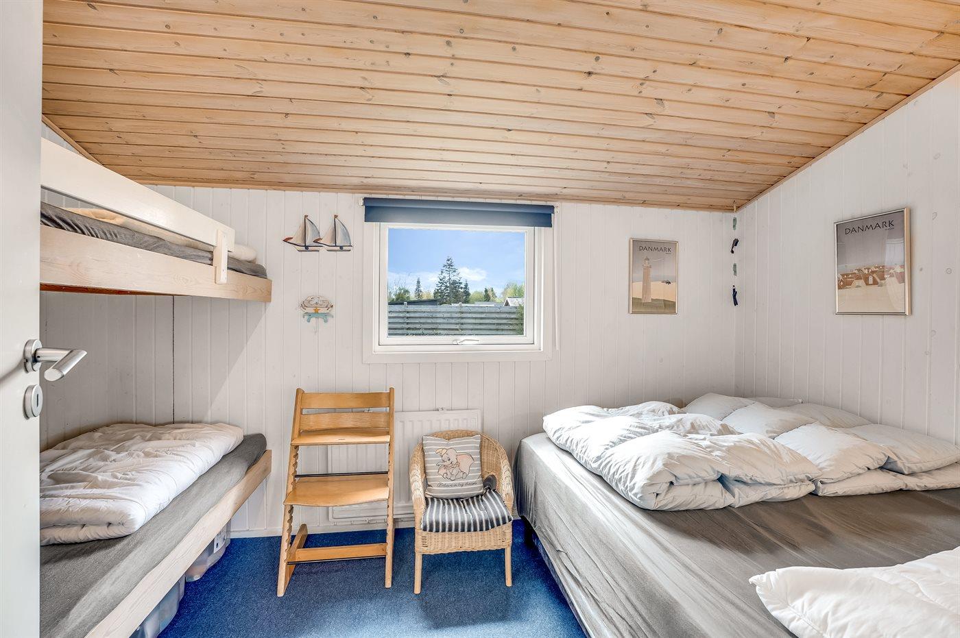Sovepladserne fordeler sig på 3 værelser med dobbeltseng samt 1 værelse med dobbeltseng og køjeseng. Huset er beliggende på en skøn, indhegnet grund med en stor og dejlig sydvendt træterrasse, hvor solen kan nydes dagen lang. Derudover byder haven på en nedgravet trampolin, et hyggeligt bålsted, en nybygget shelter, en sandkasse til de mindste, 2 stk. fodboldmål, et gyngestativ og 2 kuglegrill.