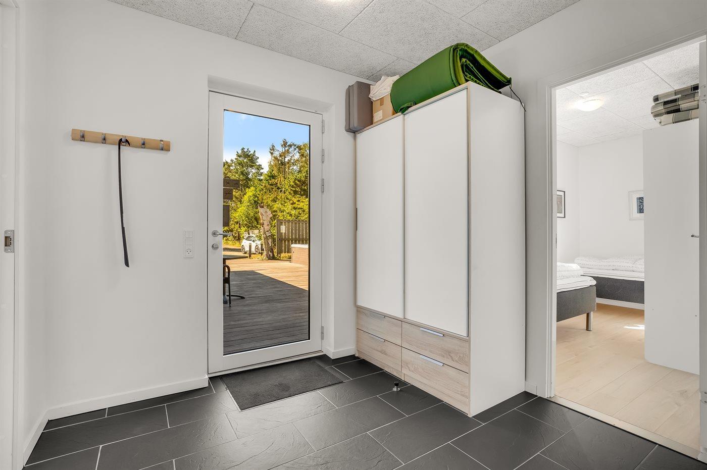 Ferieboligen er beliggende på en 1309 m² stor naturgrund. Der er 100 m til havet. Nærmeste forretning er beliggende i en afstand af 2000 m. Der er en golfbane i en afstand af 4000 m. Til ferieboligen hører åbent terrasseareal. Desuden er der overdækket terrasse. Der er redskabsrum. Gynge. Sandkasse. Bålsted. Udendørs bruser. Grill til rådighed. Parkering ved ferieboligen.