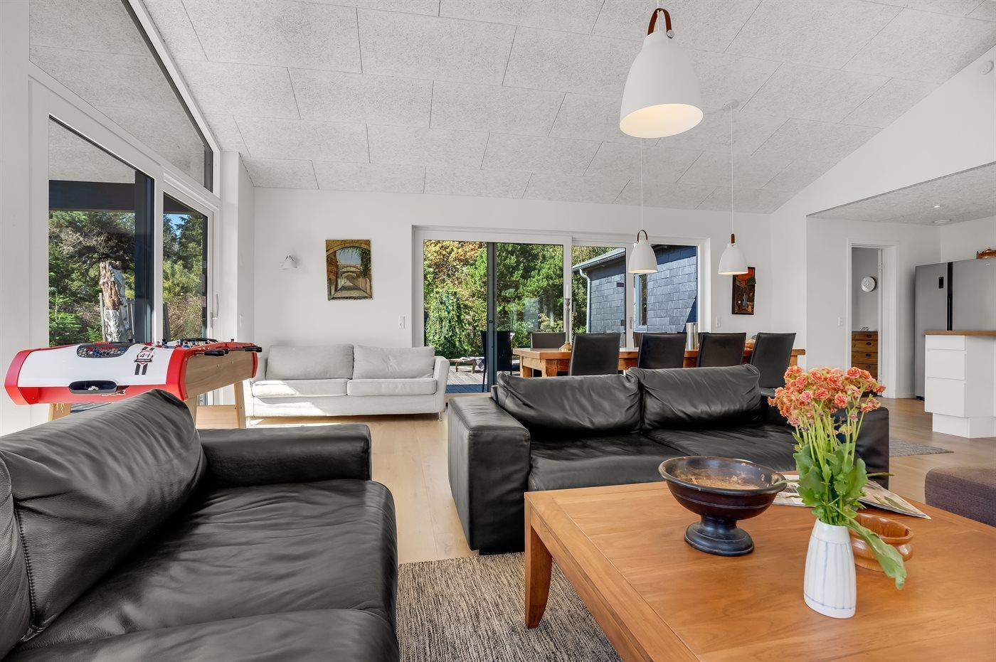 Fra stuen er der flere udgange til de fantastiske træterrasser, der inviterer til hygge, sol, skygge og hyggelige grillaftener med familien eller i gode venners lag. Her finder I bl.a. et udendørs spabad og en udendørs bruser, som I kan benytte efter en morgendukkert i Østersøen.