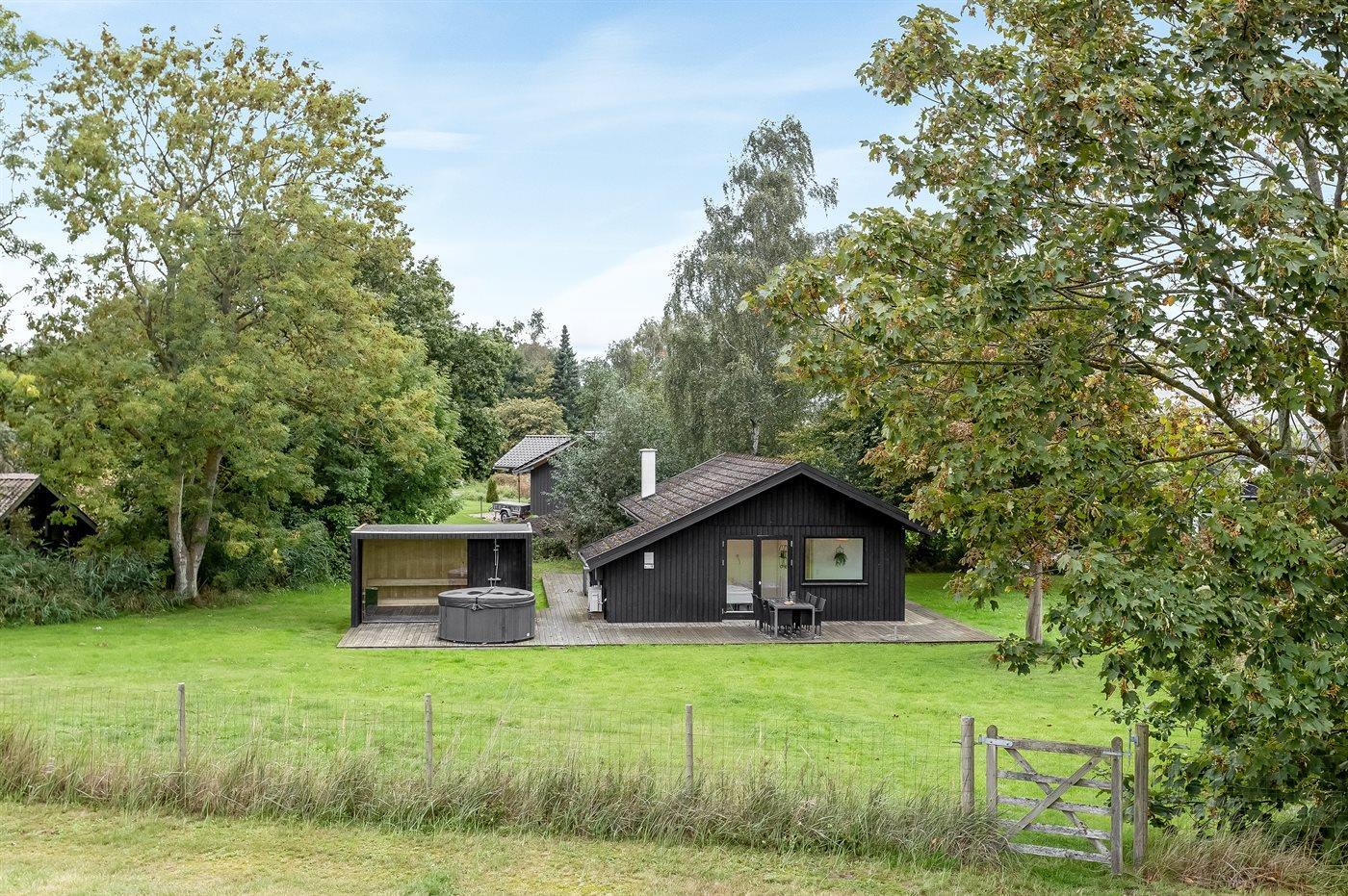 Moderne sommerhus tæt på havet med spa, sauna og stor terrasse i naturskønne omgivelser.