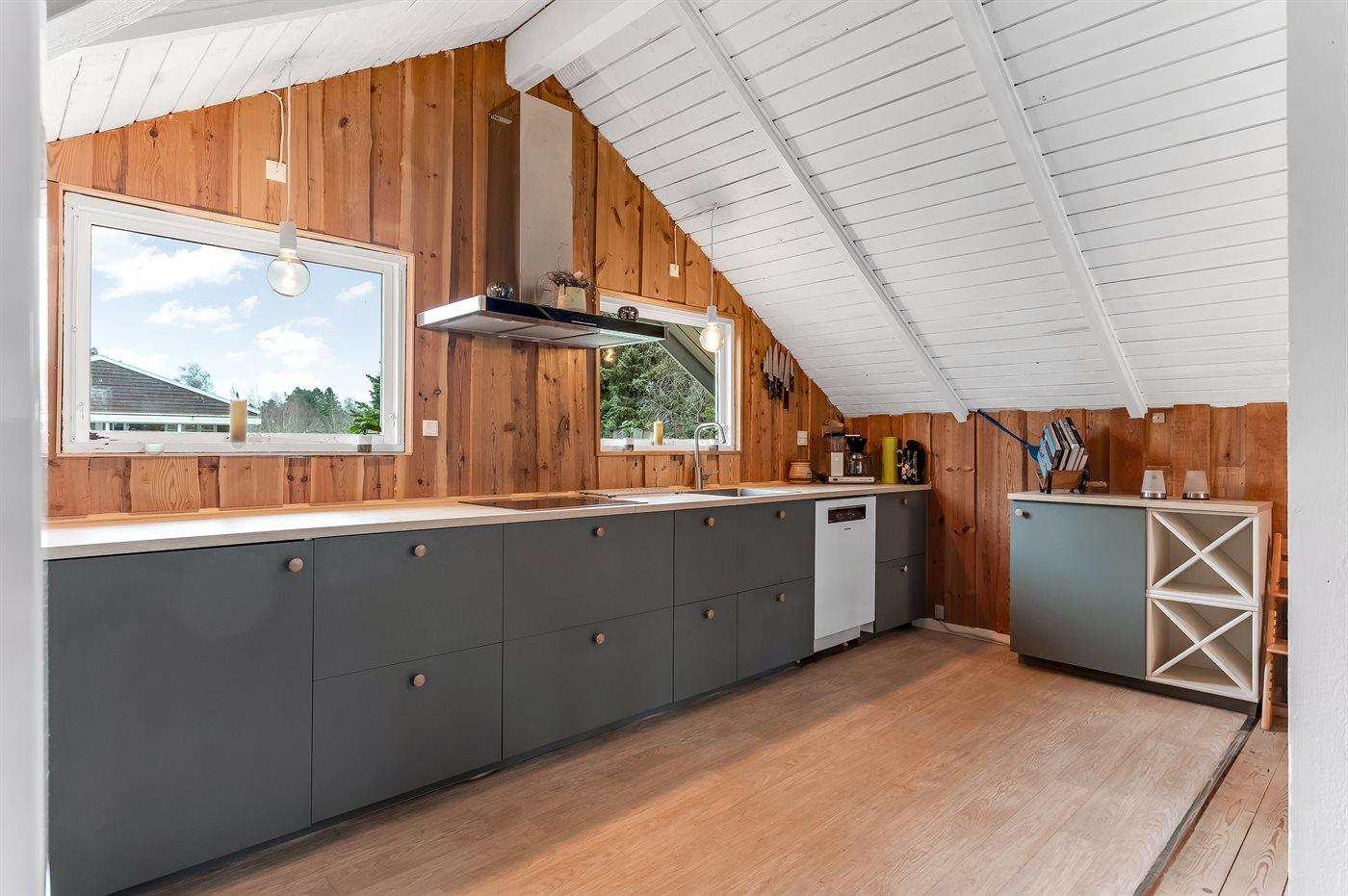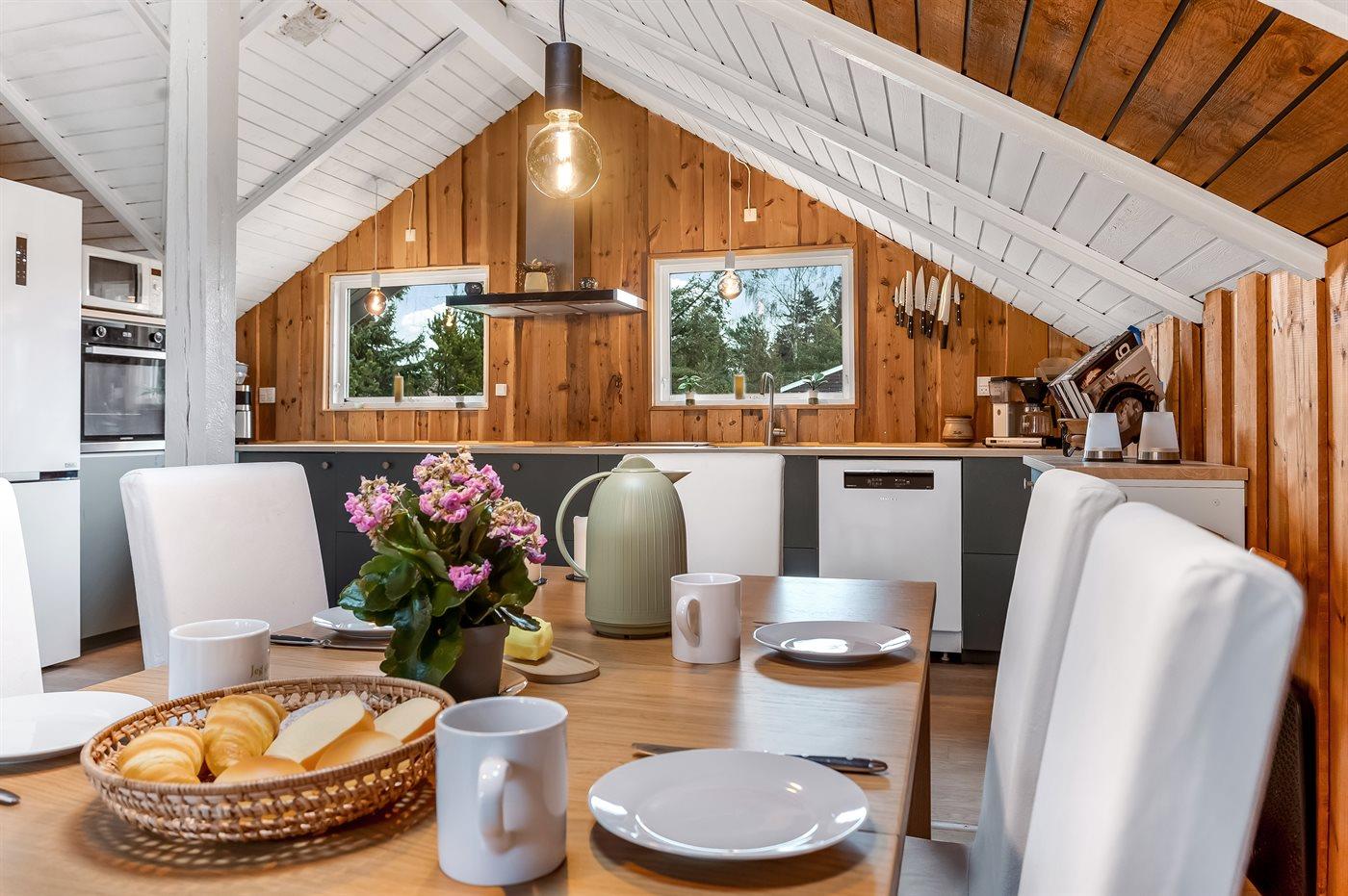 Køkkenet er udstyret med 1 køleskab. Der er 4 keramiske kogeplader, varmluftovn, mikrobølgeovn, Airfryer samt opvaskemaskine.