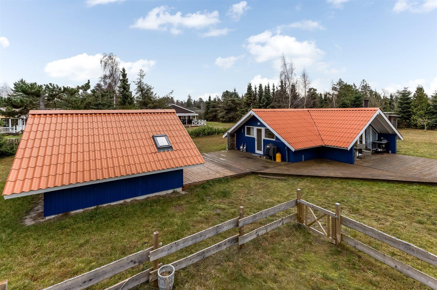 Ferieboligen er beliggende på en 1387 m² stor naturgrund. Grunden er indhegnet. Der er 700 m til havet. Nærmeste forretning er beliggende i en afstand af 2000 m. Der er en golfbane i en afstand af 1000 m. Til ferieboligen hører åbent terrasseareal. Gynge. Legehus. Rutchebane. Bålsted. Shelter. Grill til rådighed. Der er carport til rådighed. Parkering ved ferieboligen.