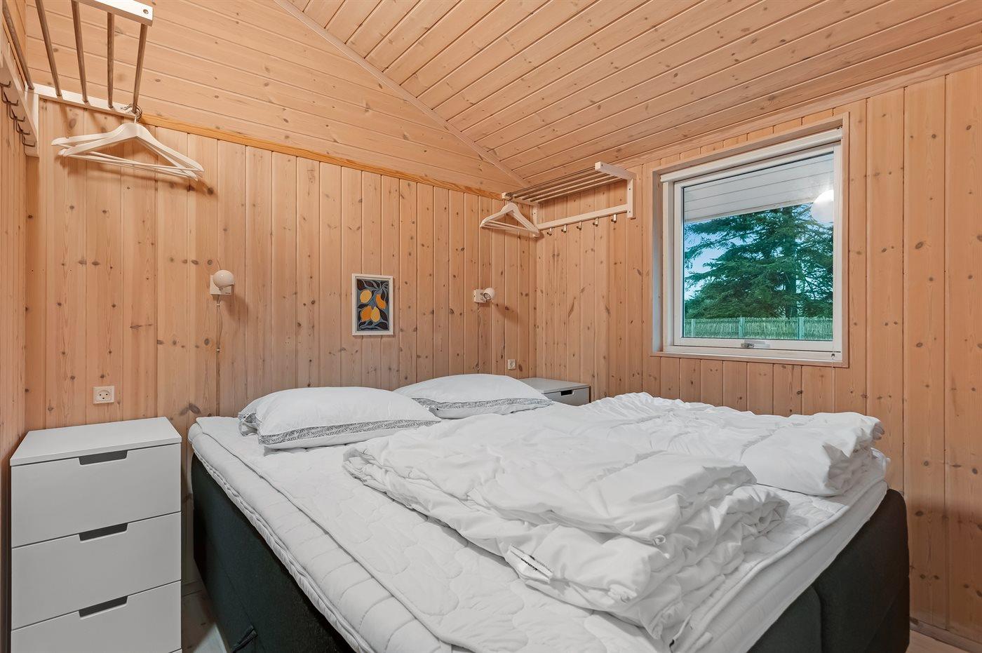 Der er i alt 3 soveværelser. Sovepladserne fordeler sig på: 6 sovepladser i dobbeltsenge. 2 sovepladser i enkeltsenge. 2 sovepladser på madrasser. 1 soveplads i alkove. 2 af disse sovepladser befinder sig på husets hems, og 2 befinder sig i stuen.