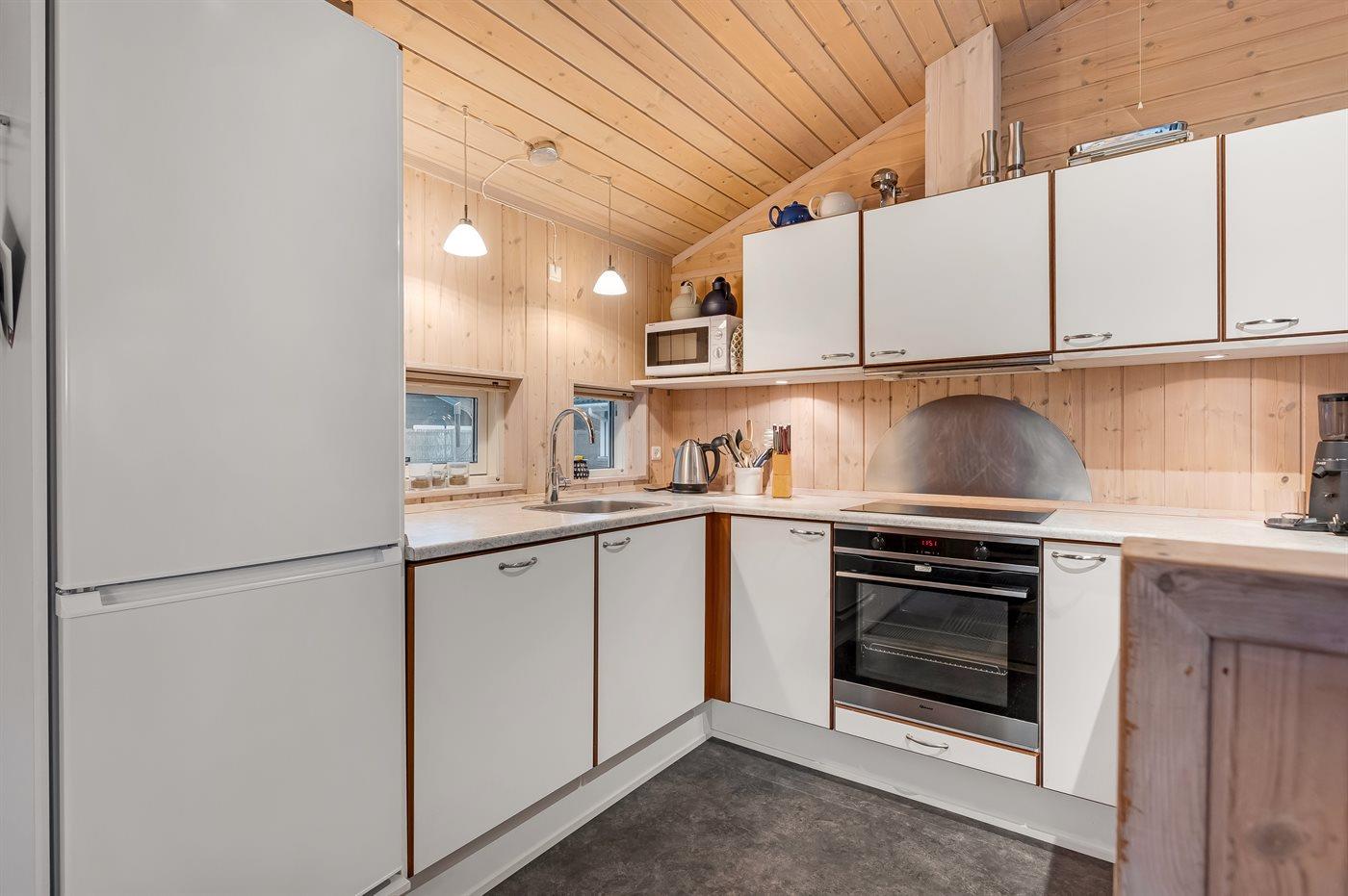 Køkkenet er udstyret med 1 køleskab. Der er 4 induktionskogeplader, varmluftovn, mikrobølgeovn samt opvaskemaskine.