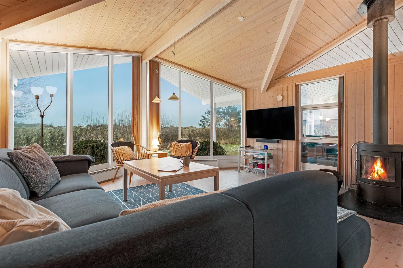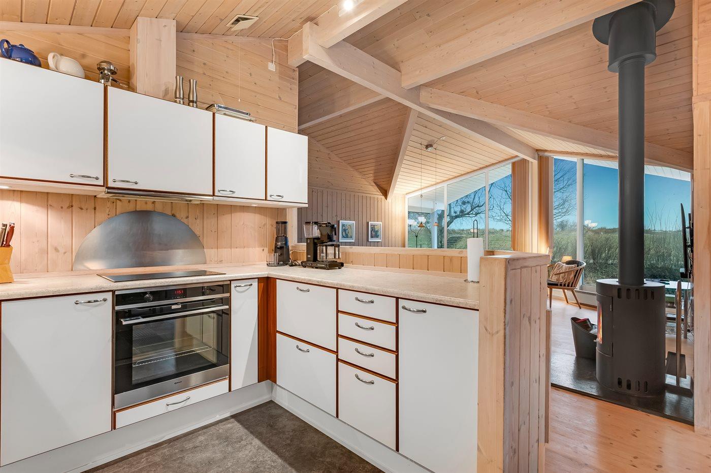 Med kun 50 meter til vandet og diget er der flere steder fra huset bl.a. fra stuen og køkken alrum udsigt ud til have og dige. Der er en skøn terrasse, hvor der både er overdækket og åbent. Ydermere er der ved sommerhuset en udendørs bruser, når man lige har været en tur nede i det dejlige hav og ved sandstranden.