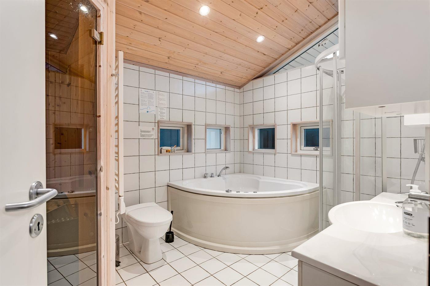 Der er 1 badeværelse med bruseniche og 2 toiletter, heraf 1 gæstetoilet. Der er gulvvarme på 1 badeværelse. I saunaen er der mulighed for afslapning.
