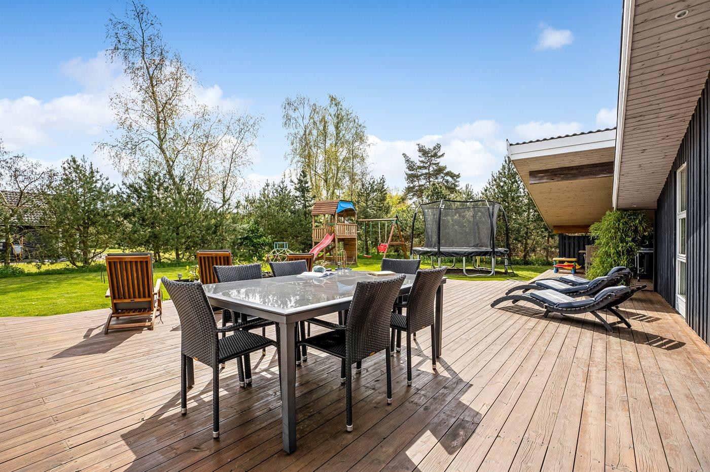 Ferieboligen er beliggende på en 939 m² stor havegrund. Der er 700 m til havet. Nærmeste forretning er beliggende i en afstand af 1000 m. Der er en golfbane i en afstand af 5000 m. Til ferieboligen hører åbent terrasseareal. Desuden er der overdækket terrasse. Gynge. Sandkasse. Trampolin. Legetårn. Rutchebane. Grill til rådighed. Der er installeret stik til opladning af elbil. CEE stik. Parkering ved ferieboligen.