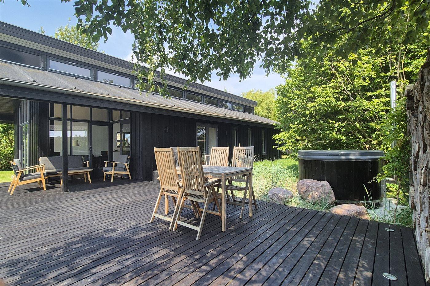 Moderne sommerhus med spa og trampolin nær strand