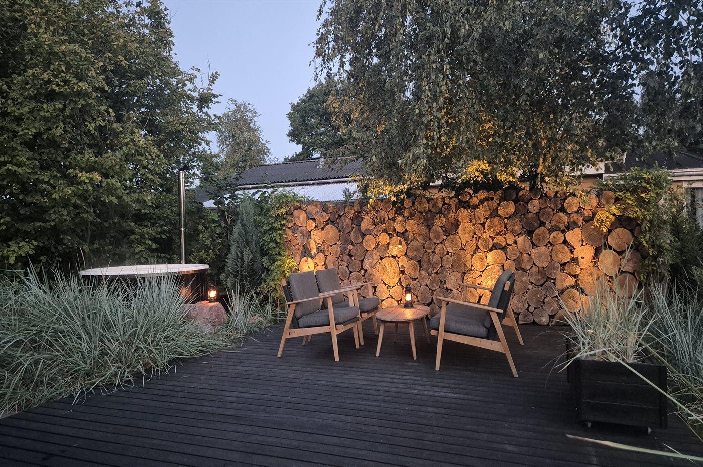 Der er mulighed for afslapning i det udendørs vildmarkskar til 4 personer.