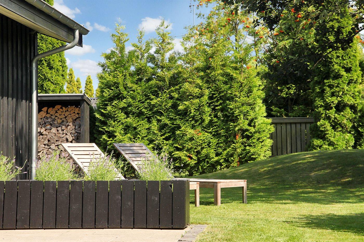Ferieboligen er beliggende på en 1000 m² stor naturgrund. Der er 700 m til havet. Nærmeste forretning er beliggende i en afstand af 500 m. Til ferieboligen hører 100 m² terrasseareal. Desuden er der 20 m² overdækket terrasse. Der findes trampolin (inground 330x220 cm). Bålsted. Der er carport til rådighed. Der er installeret stik til opladning af elbil. Med 11 kW ladeeffekt. Parkering ved ferieboligen.
