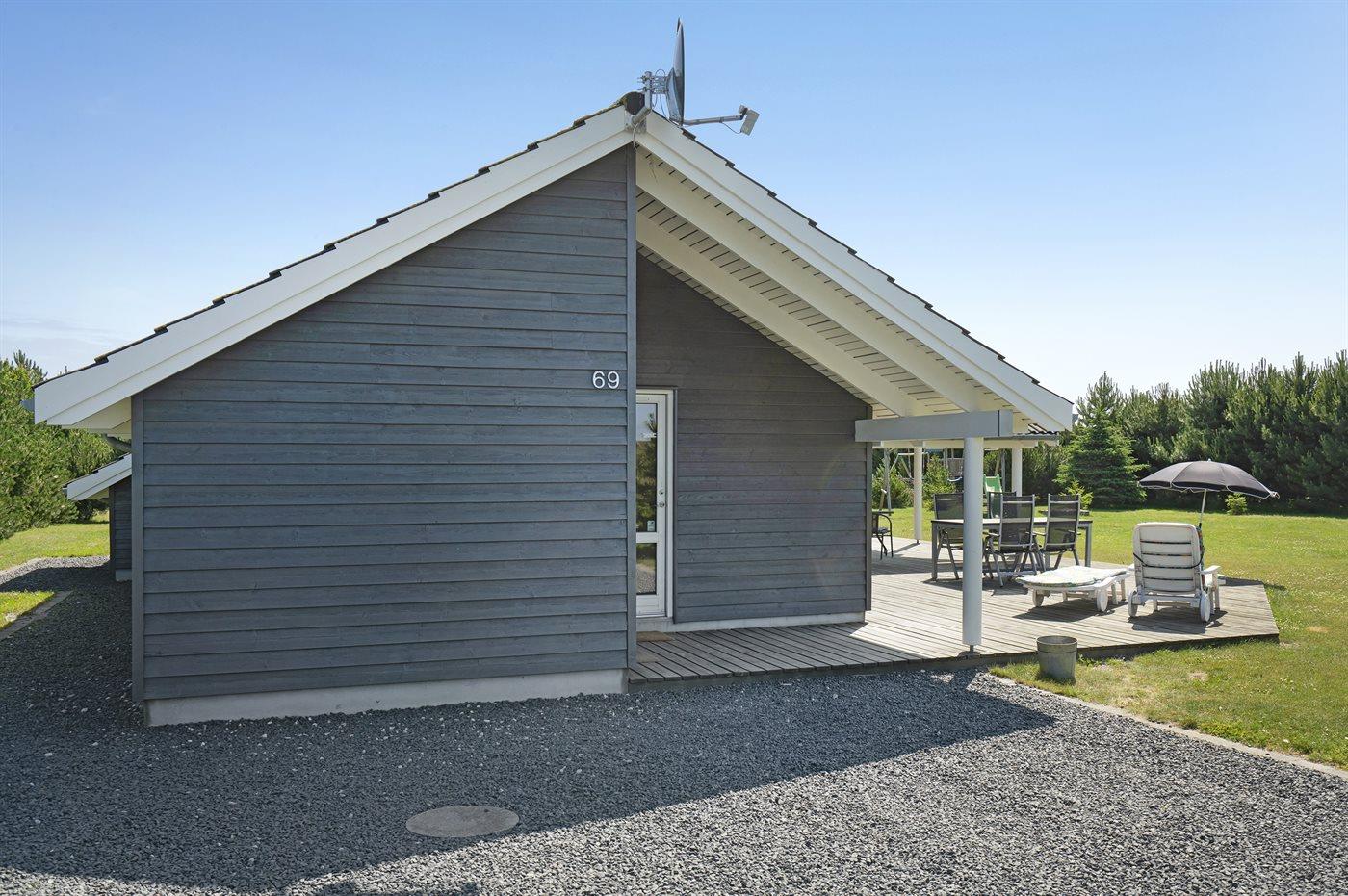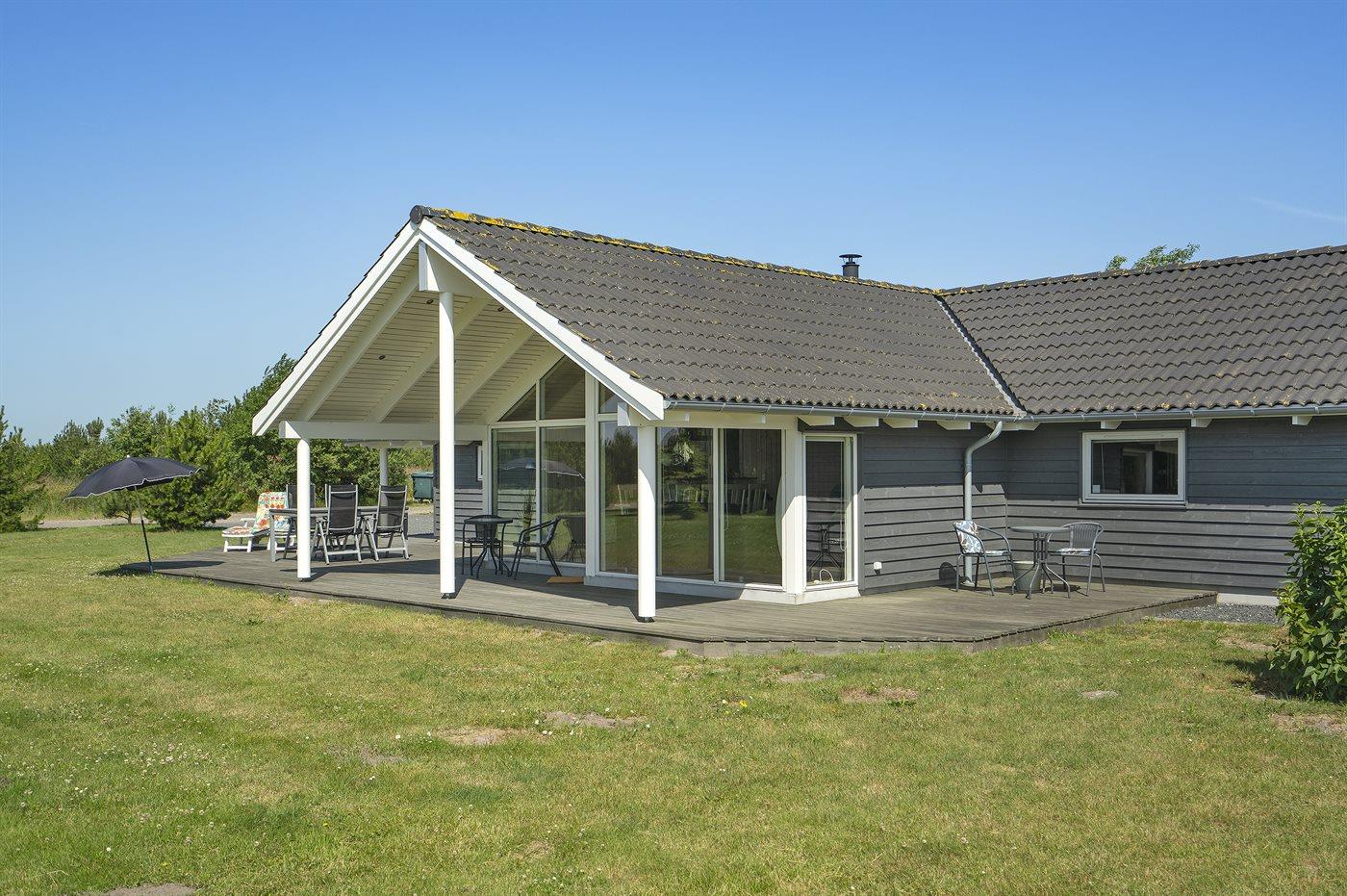 Flot og skønt sommerhus i træ, bygget i 2008, beliggende på en dejlig naturgrund ikke langt fra børnevenlig sandstrand (1100 m). Til huset hører et stort, til dels overdækket terrasseareal med gode læmuligheder, havemøbler og god plads til leg. Grill kan benyttes (rengøres efter brug). Der er installeret lader for opladning af elbil.