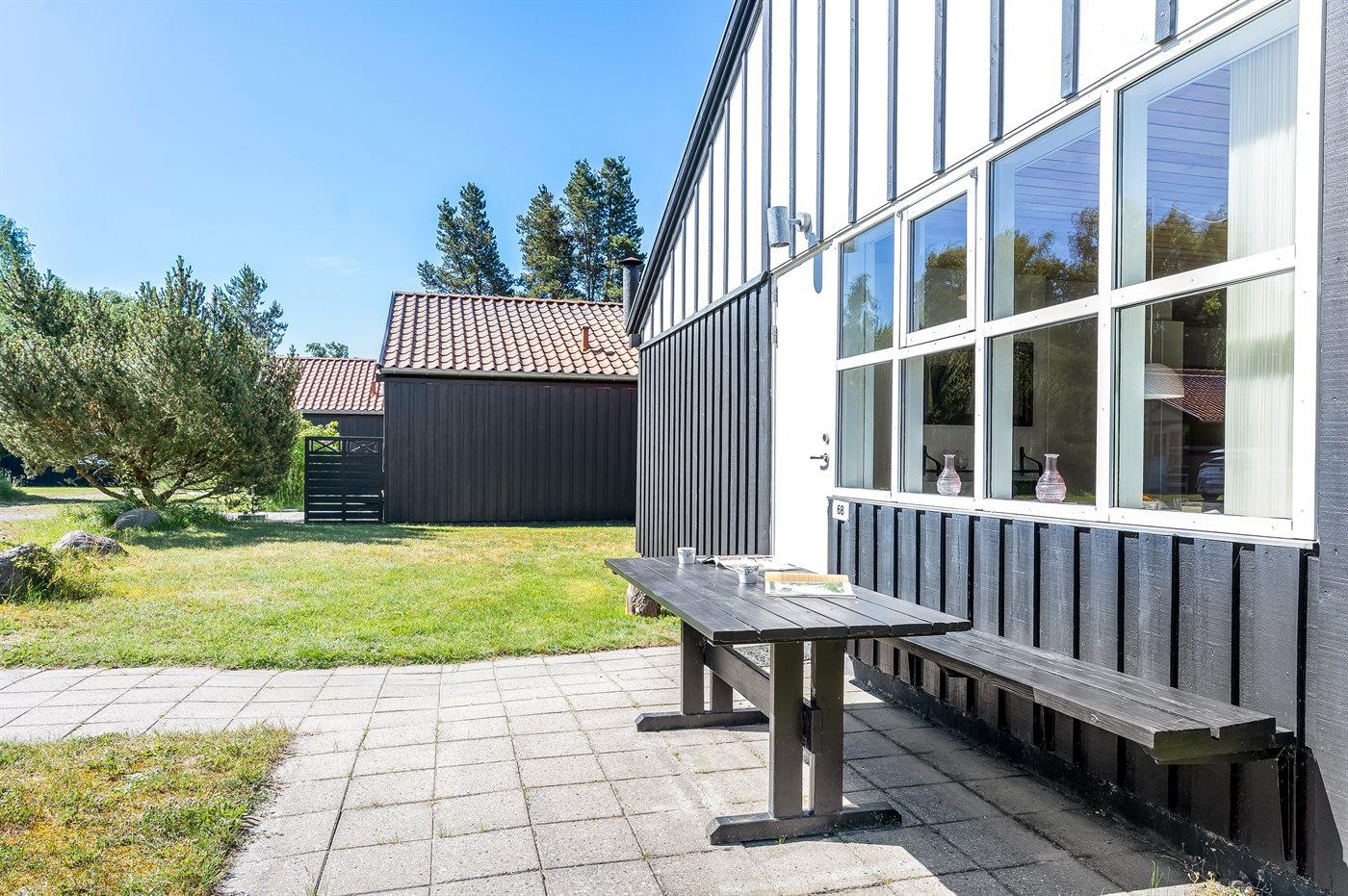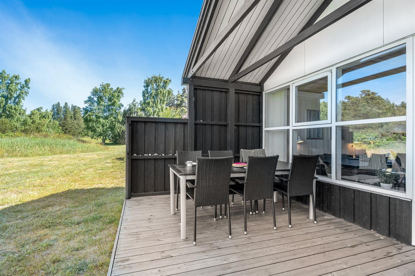 Ferieboligen er beliggende på en 250 m² stor naturgrund. Der er 300 m til havet. Til ferieboligen hører åbent terrasseareal. Desuden er der overdækket terrasse. Grill til rådighed.