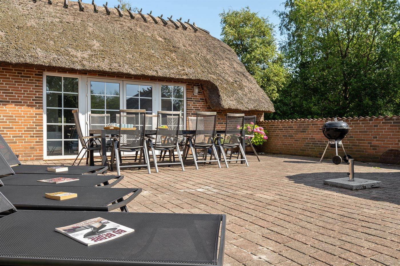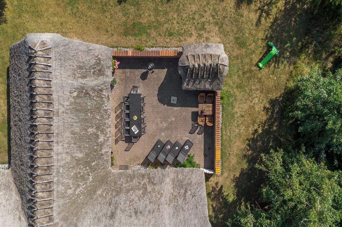Ferieboligen er beliggende på en 2247 m² stor naturgrund. Der er 1300 m til havet. Nærmeste forretning er beliggende i en afstand af 1000 m. Der er en golfbane i en afstand af 4800 m. Til ferieboligen hører 65 m² lukket terrasse. Der er redskabsrum. Nedgravet trampolin (diameter 3,96) med sikkerhedsnet. Gynge. Fodboldmål. Parkering ved ferieboligen. Der er opsat ladestander med 11 kW ladeeffekt til opladning af elbil.