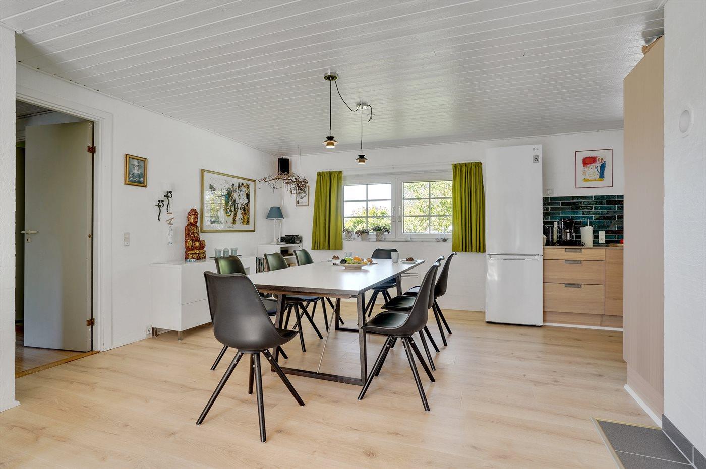 Køkkenet er nyt og er udstyret med køleskab. Der er 4 keramiske kogeplader, varmluftovn, mikrobølgeovn samt opvaskemaskine.
