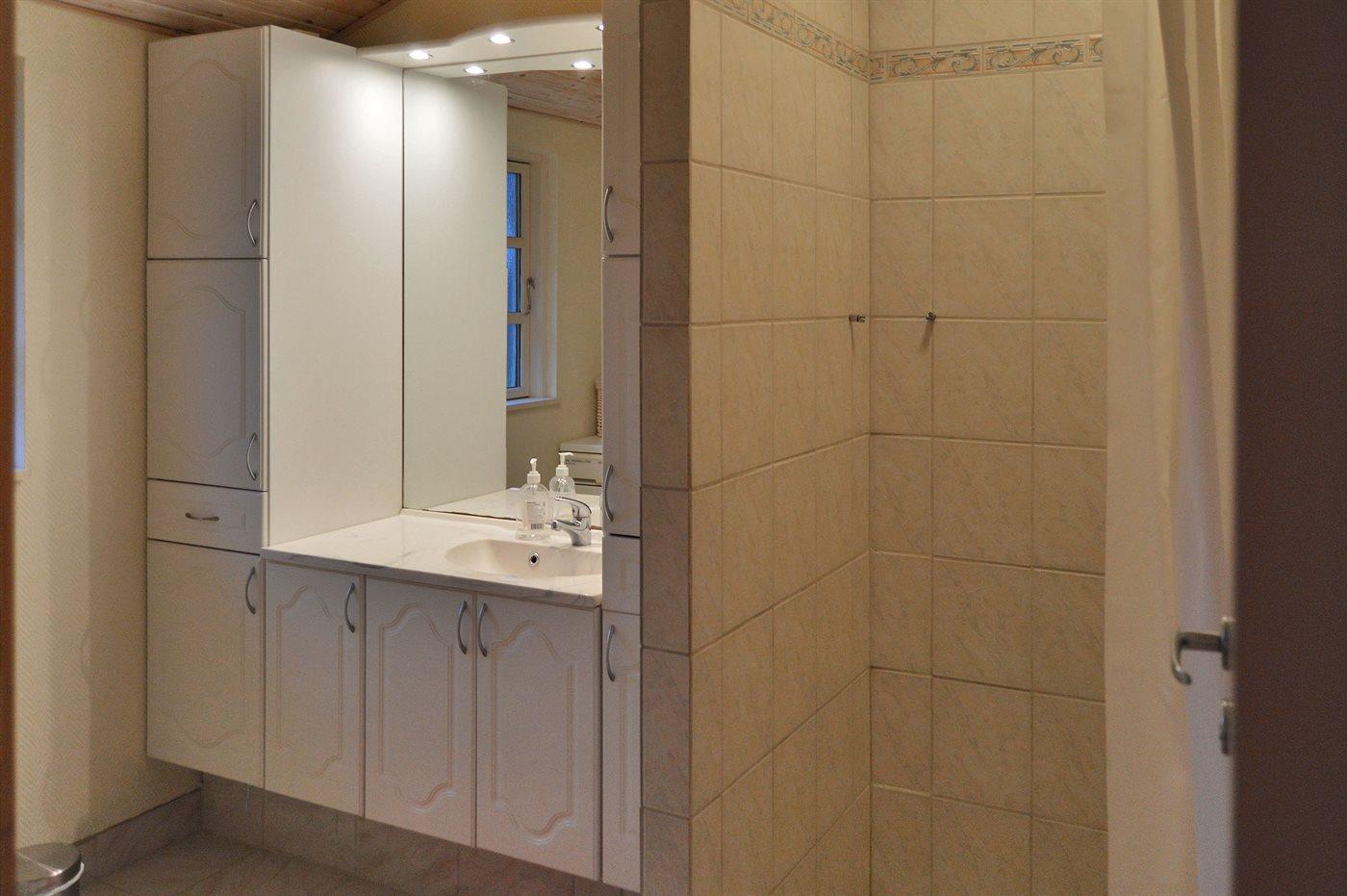 Der er 1 badeværelse med bruseniche og 1 toilet.