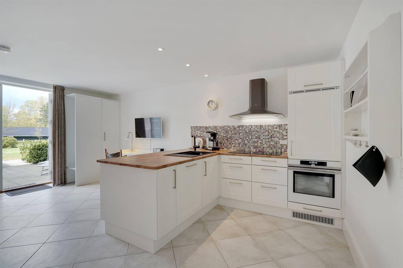 Køkkenet er udstyret med 1 køleskab. Der er 4 keramiske kogeplader, varmluftovn samt opvaskemaskine.