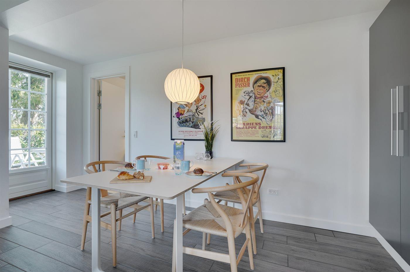 Køkkenet er udstyret med 1 køleskab. Der er 4 keramiske kogeplader, varmluftovn samt opvaskemaskine.