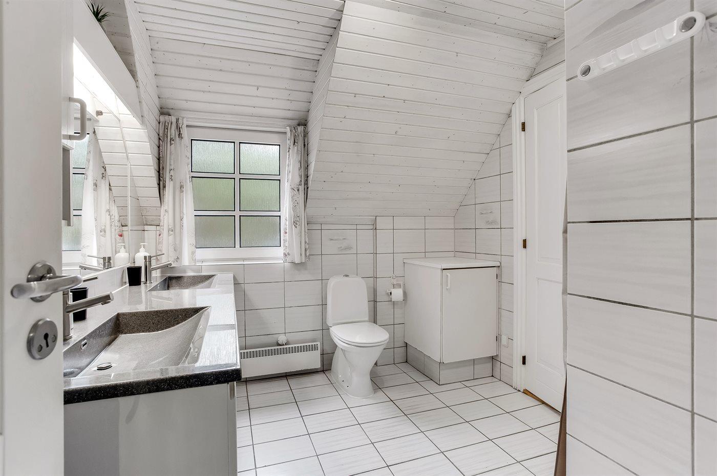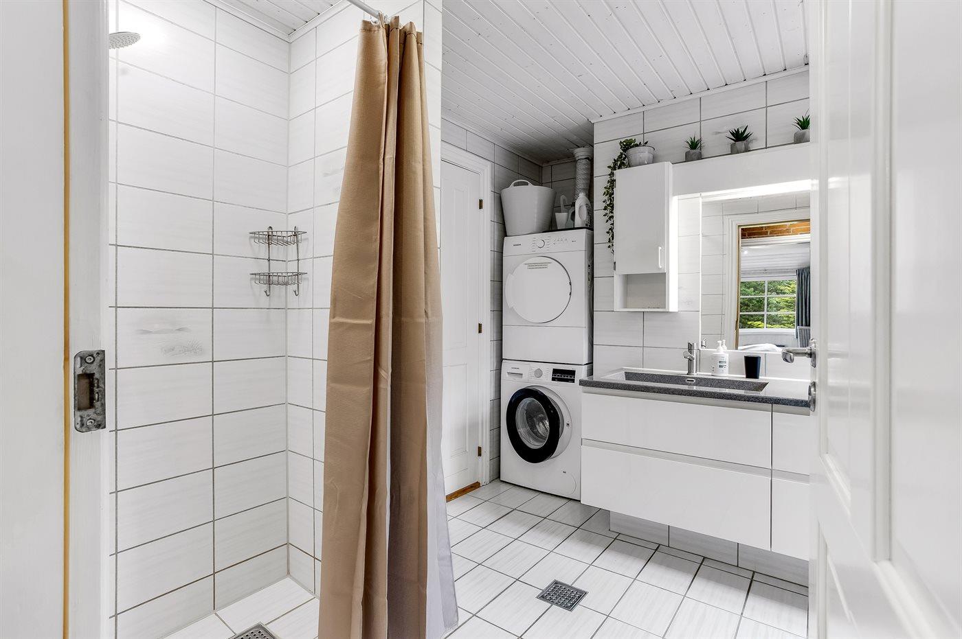 Sommerhuset har 2 badeværelser – begge med bruseniche og toilet. Der er gulvvarme på begge badeværelser, som befinder sig i hver sin ende af huset, hvilket gør det bekvemt for flere familier at holde ferie i sommerhuset sammen. På det største badeværelse findes vaskemaskine samt tørretumbler.
