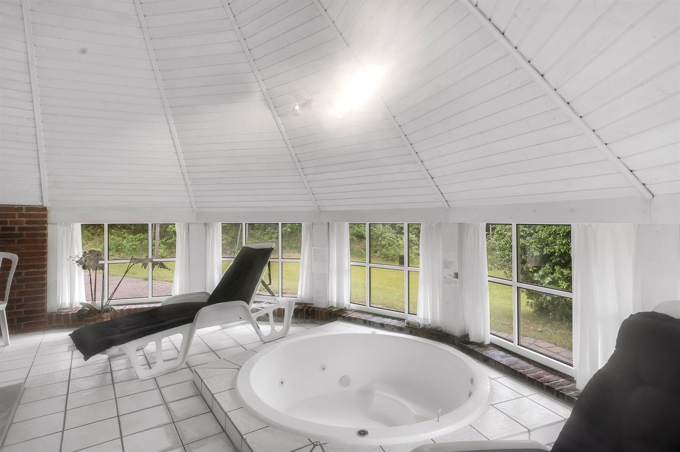 Den indendørs spa har plads til 4 personer, og her er der rig mulighed for afslapning. Der er gulvvarme i hele spa og pool området.
