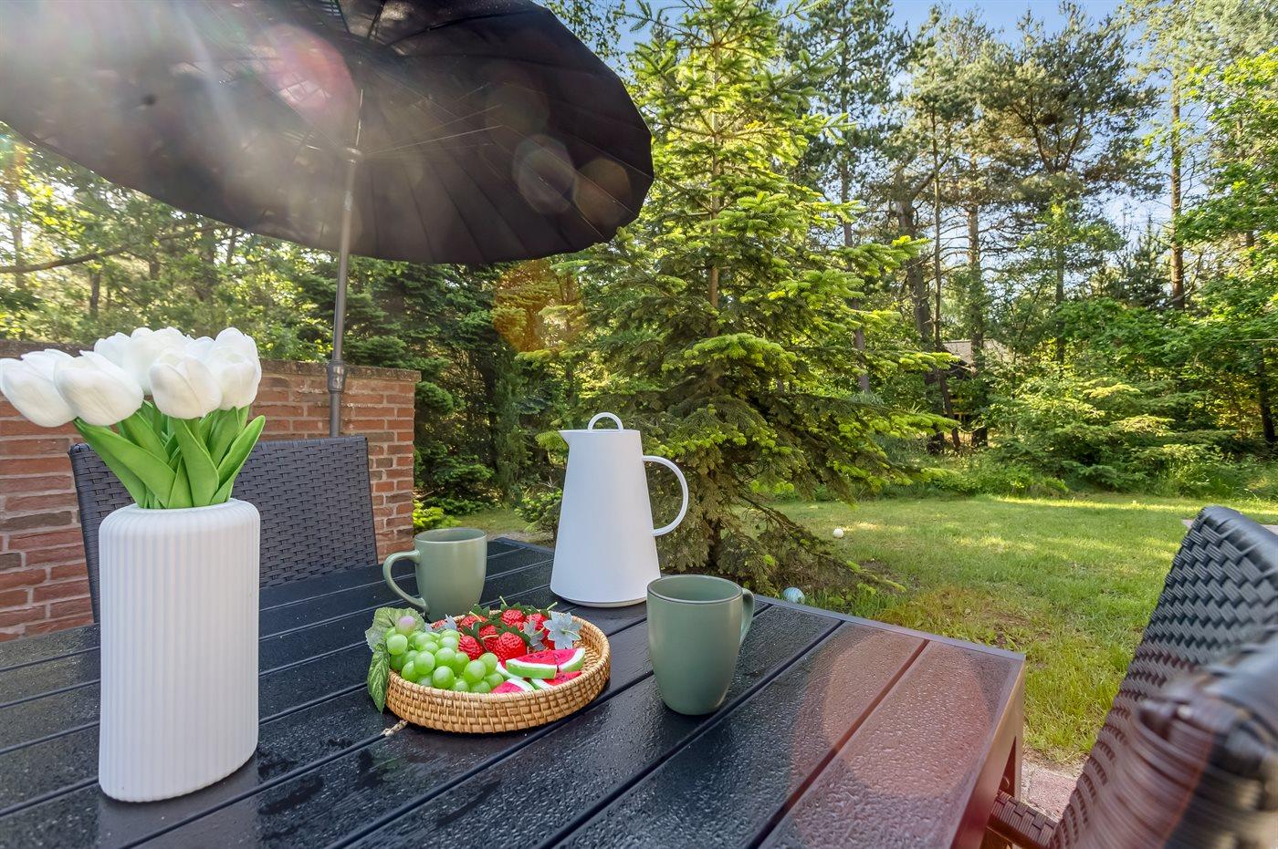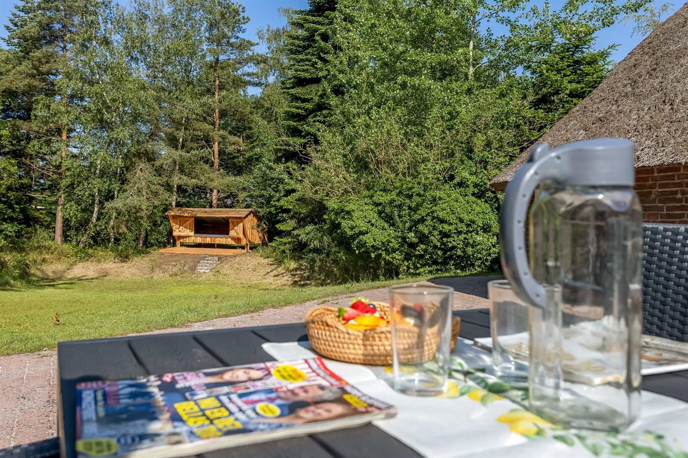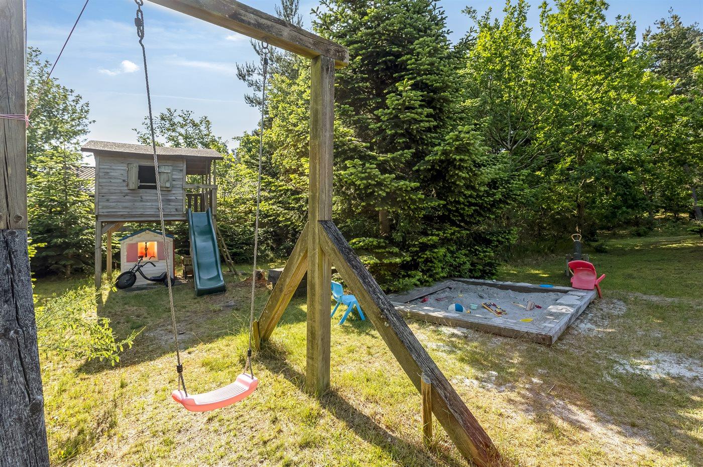 På terrassen er der plads til en hængekøje, ligesom der er en grill til rådighed. Til børnene er der gynge, sandkasse samt legetårn med rutchebane.