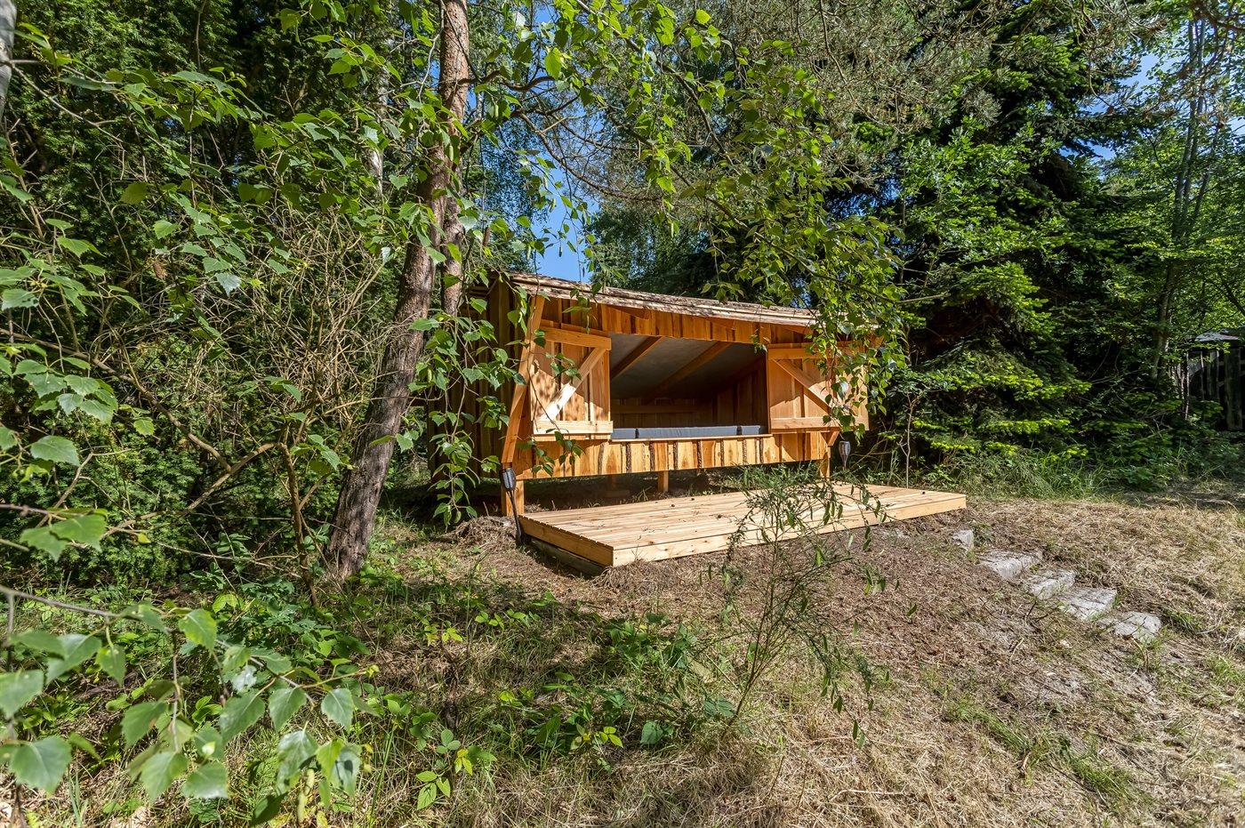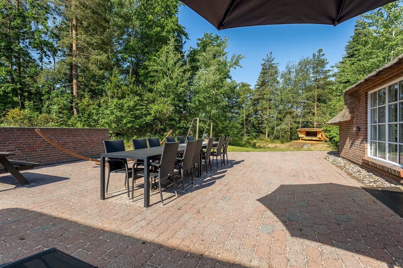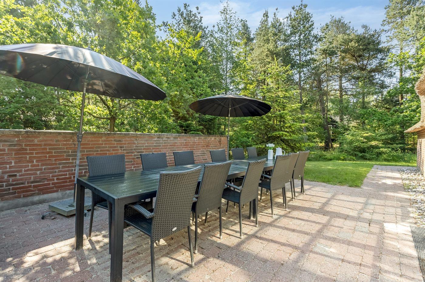 På terrassen er der plads til en hængekøje, ligesom der er en grill til rådighed. Til børnene er der gynge, sandkasse samt legetårn med rutchebane.