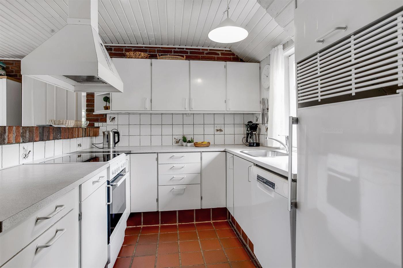 Køkkenet, som ligger i forbindelse med opholdsrummet, er udstyret med et køleskab og en køletønde til drikkevarer samt en fryser med frysekapacitet på 110 liter. Her er 4 keramiske kogeplader, varmluftovn, mikrobølgeovn samt opvaskemaskine.