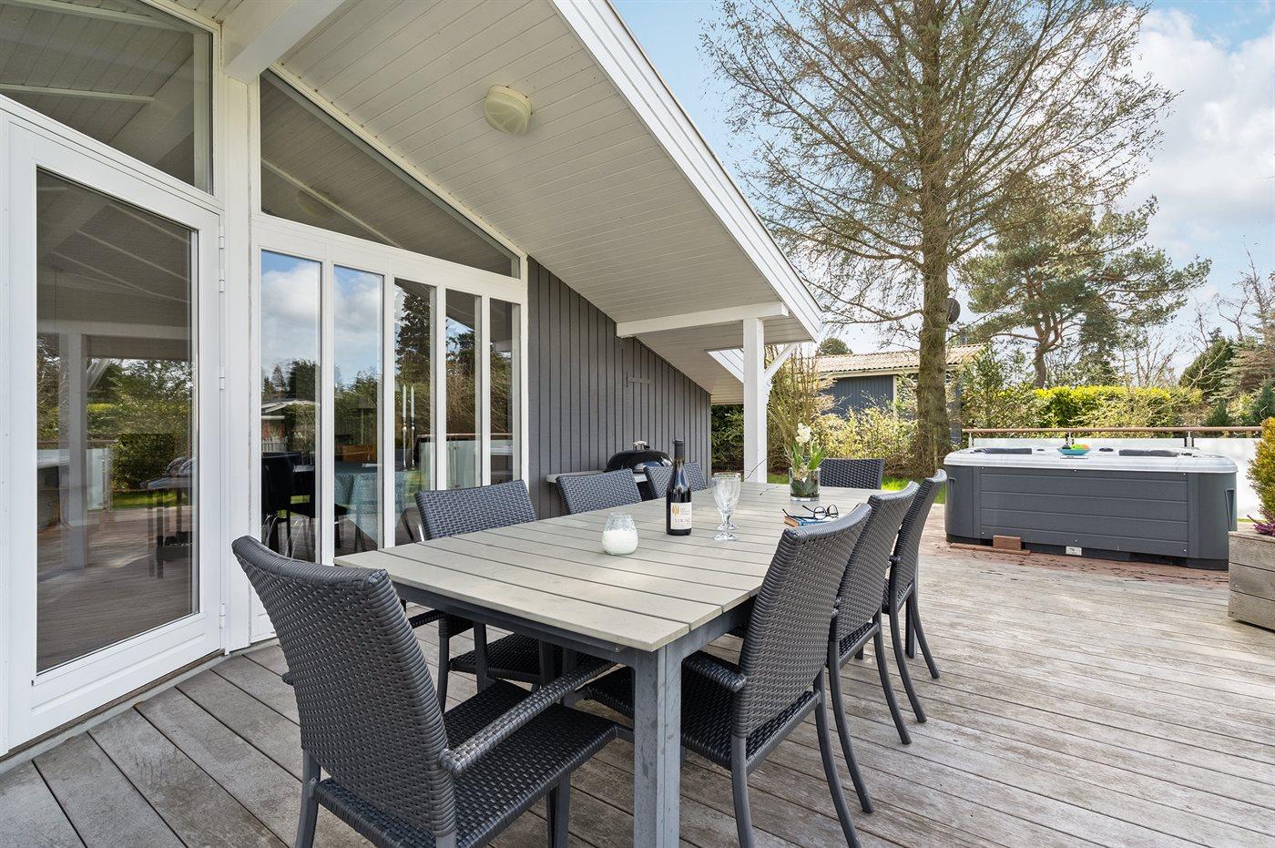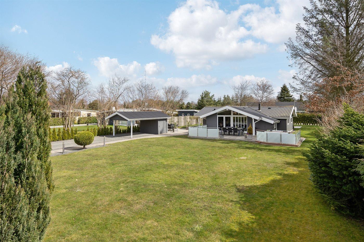 Ferieboligen er beliggende på en 1000 m² stor havegrund. Der er 800 m til havet. Nærmeste forretning er beliggende i en afstand af 500 m. Der er en golfbane i en afstand af 2000 m. Til ferieboligen hører 50 m² terrasseareal. Desuden er der 6 m² overdækket terrasse. Der er redskabsrum. Gynge. Sandkasse. Petanque. Grill til rådighed. Der er carport til rådighed. Parkering ved ferieboligen.