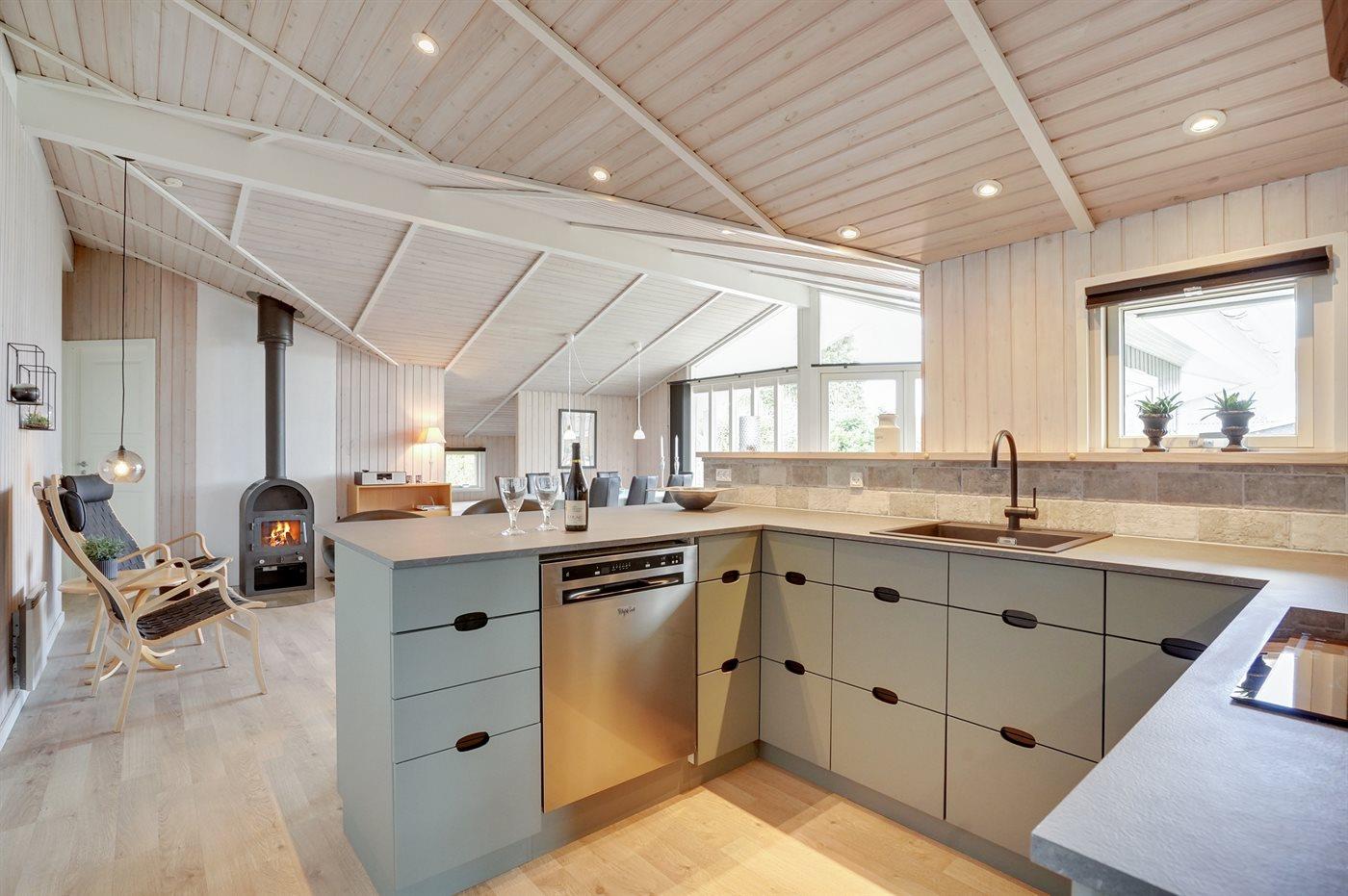 Køkkenet er udstyret med 1 køleskab. Der er 4 induktionskogeplader, bageovn, mikrobølgeovn samt opvaskemaskine.