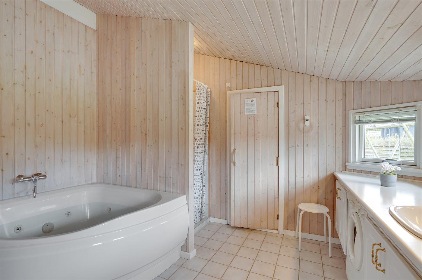 Der er 1 badeværelse med bruseniche og 2 toiletter, heraf 1 gæstetoilet. Der er gulvvarme på 1 badeværelse. I saunaen er der mulighed for afslapning.